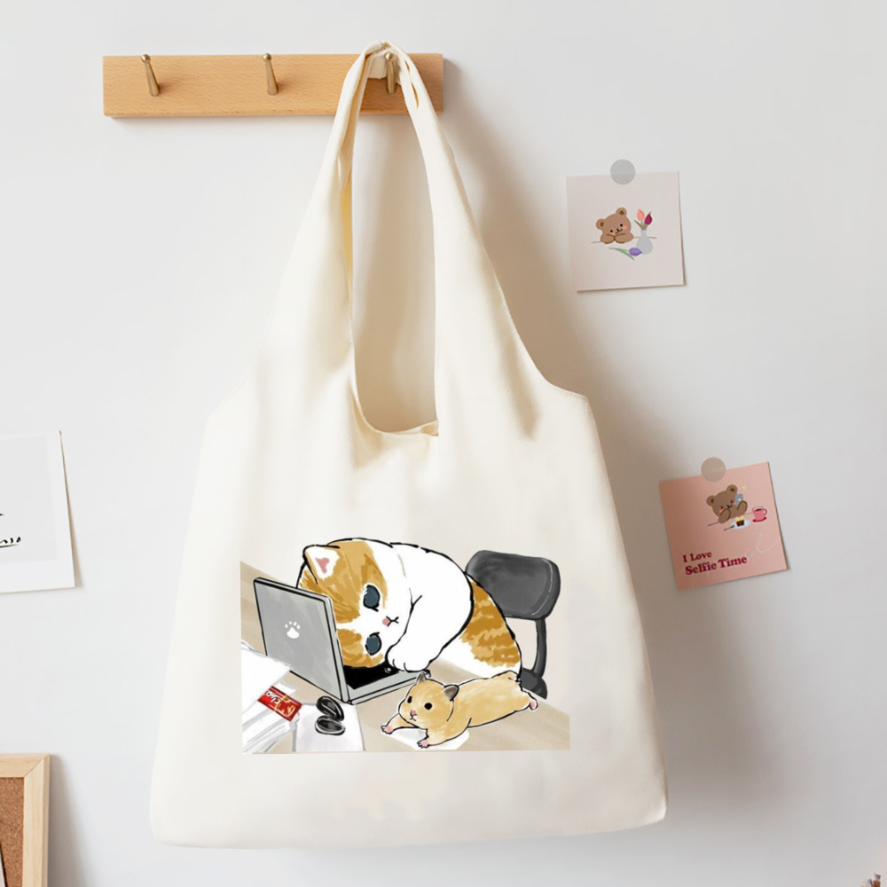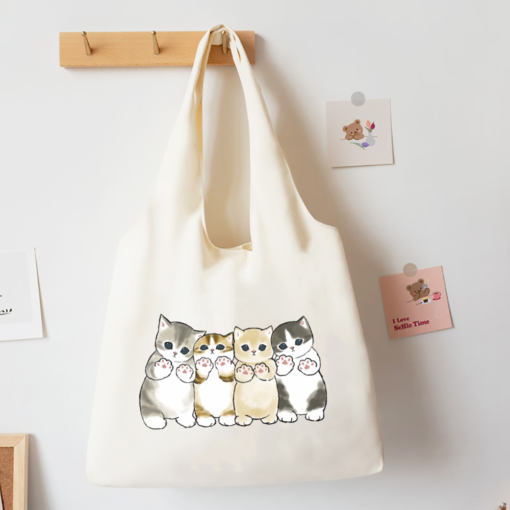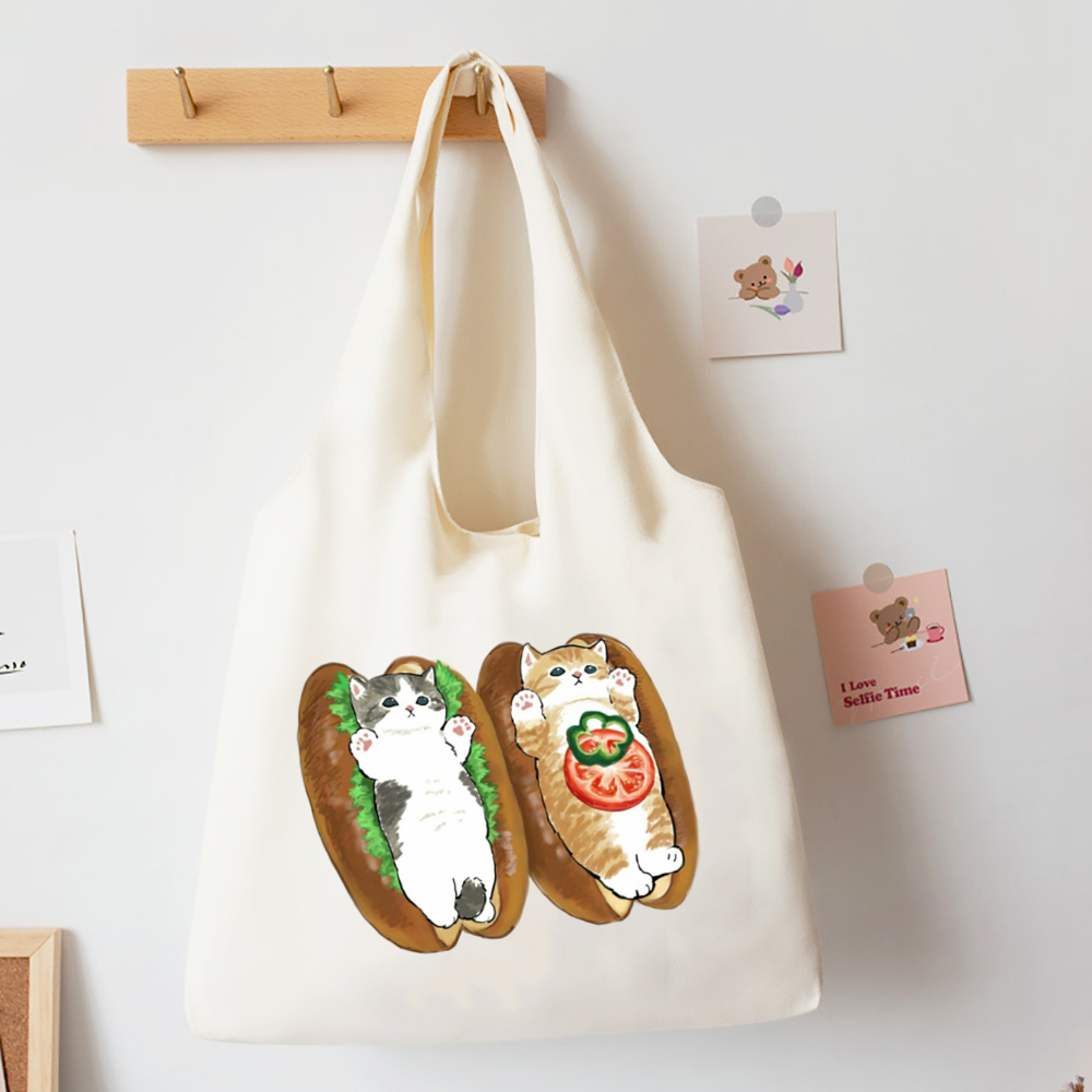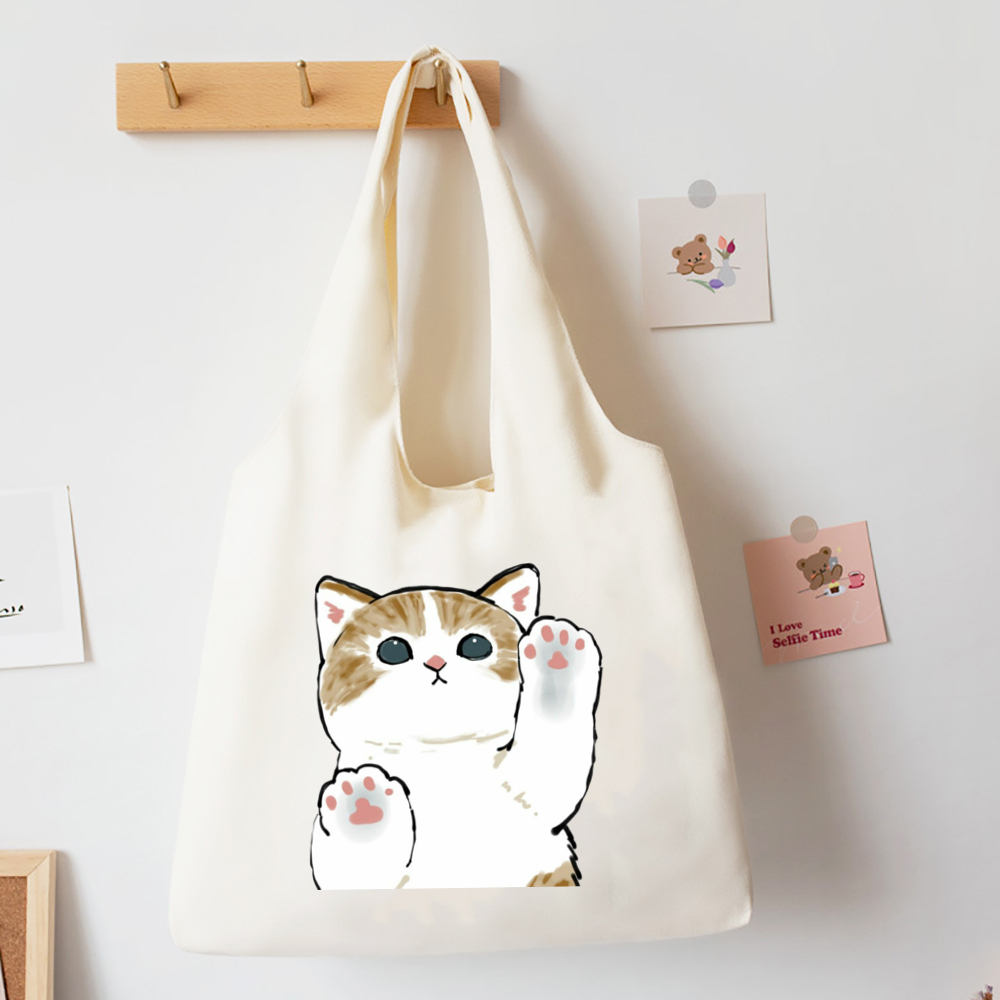 Cute Cat Print Canvas Tote Bag Casual Storage Bags Large Capacity Shopping Bag Women Totebag for Student Shoulder Bag 帆布包 Ins