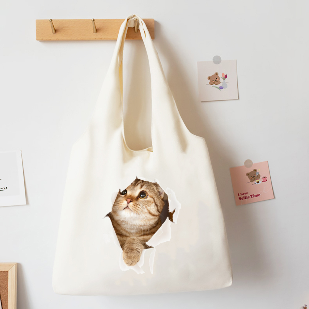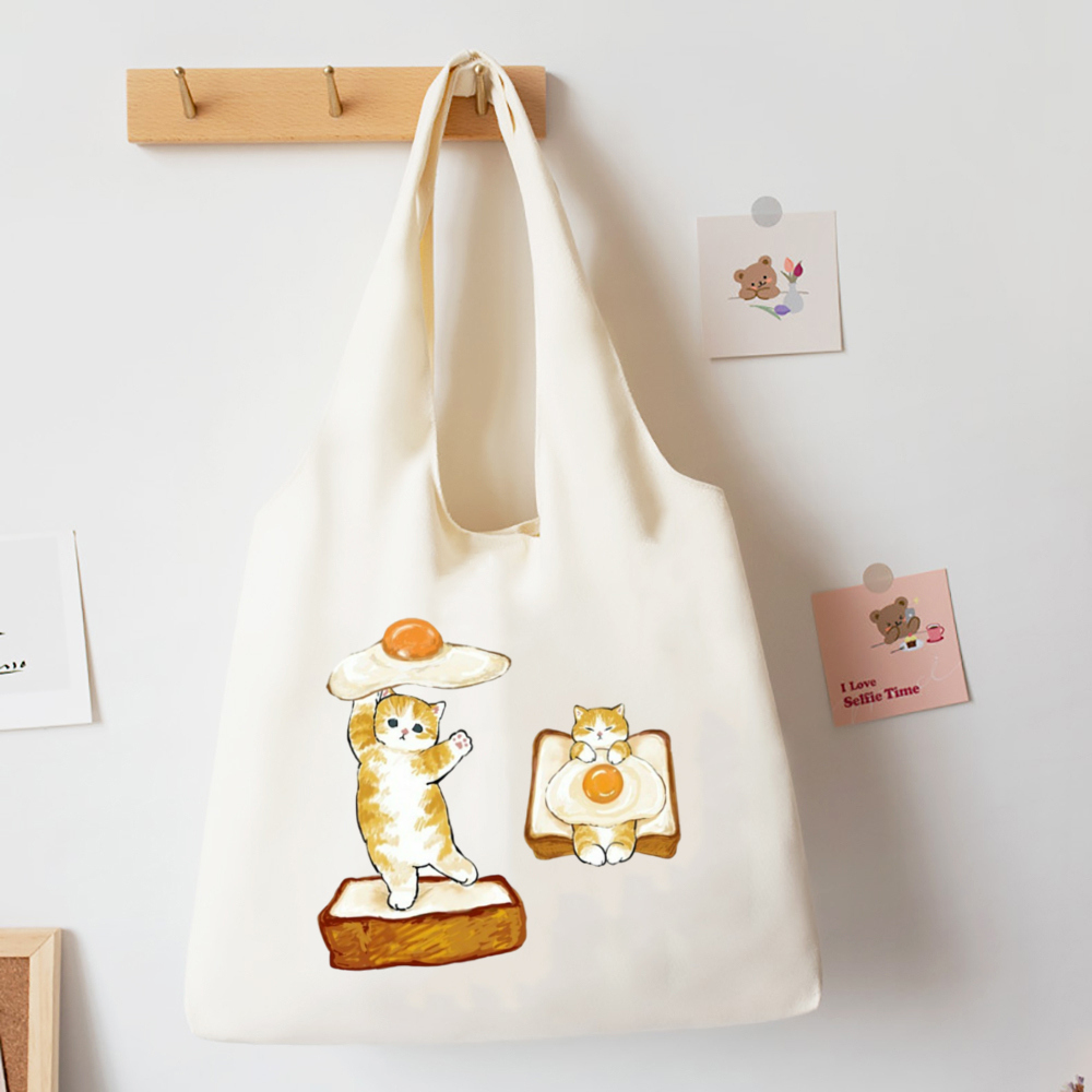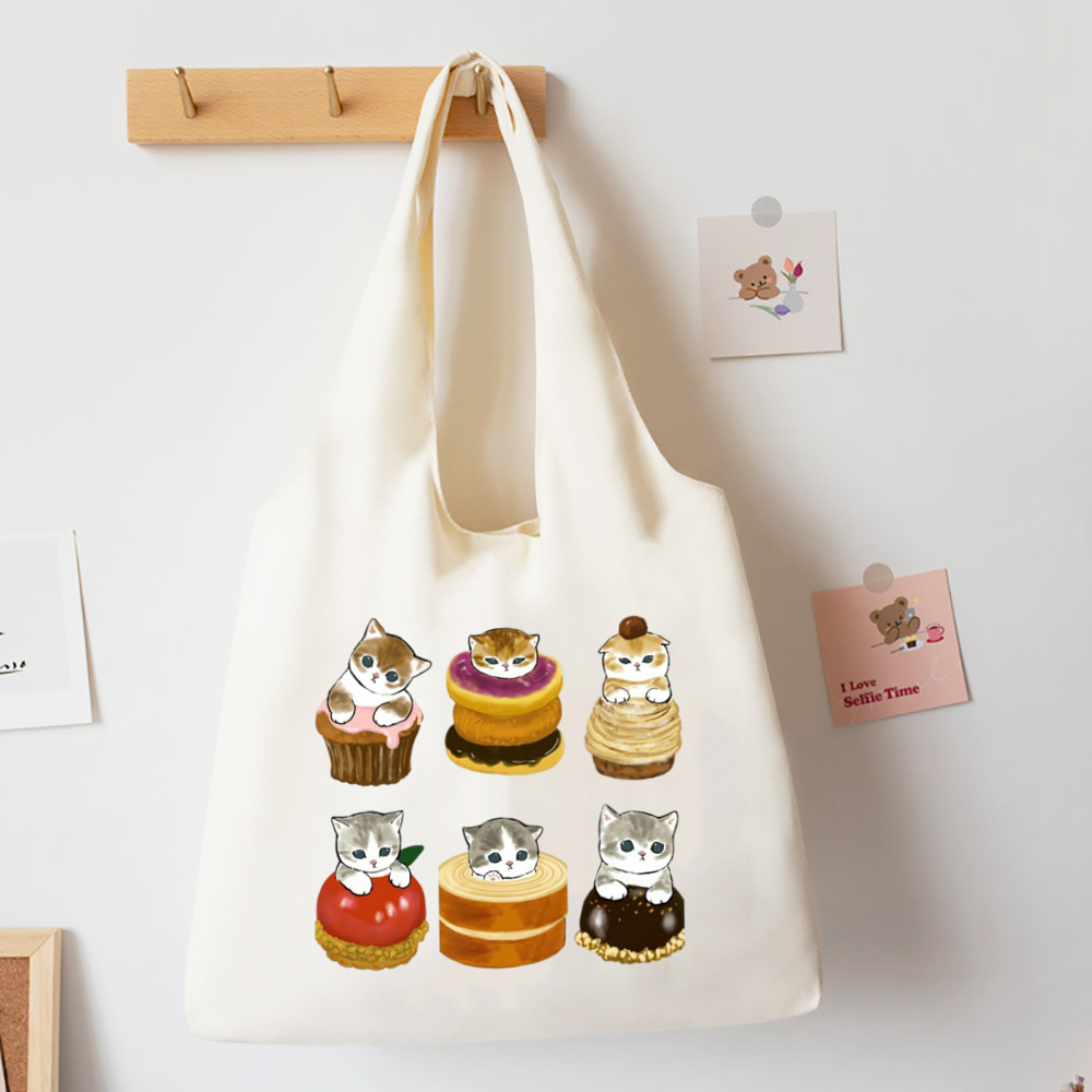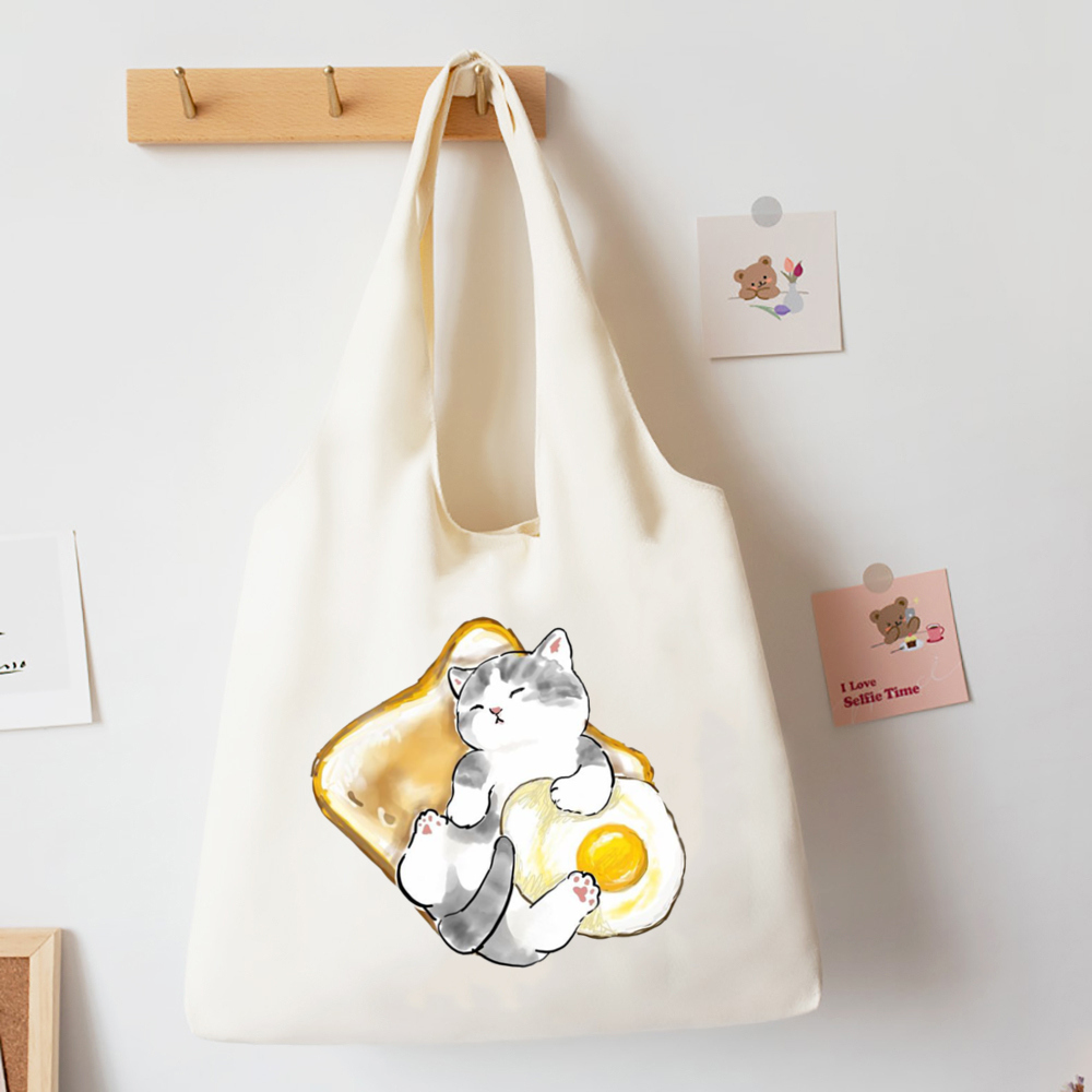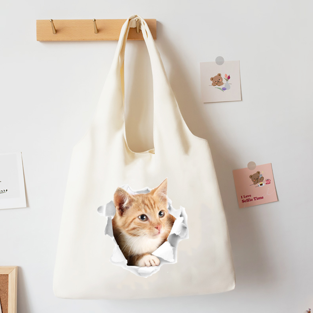 Cute Cat Print Canvas Tote Bag Casual Storage Bags Large Capacity Shopping Bag Women Totebag for Student Shoulder Bag 帆布包 Ins