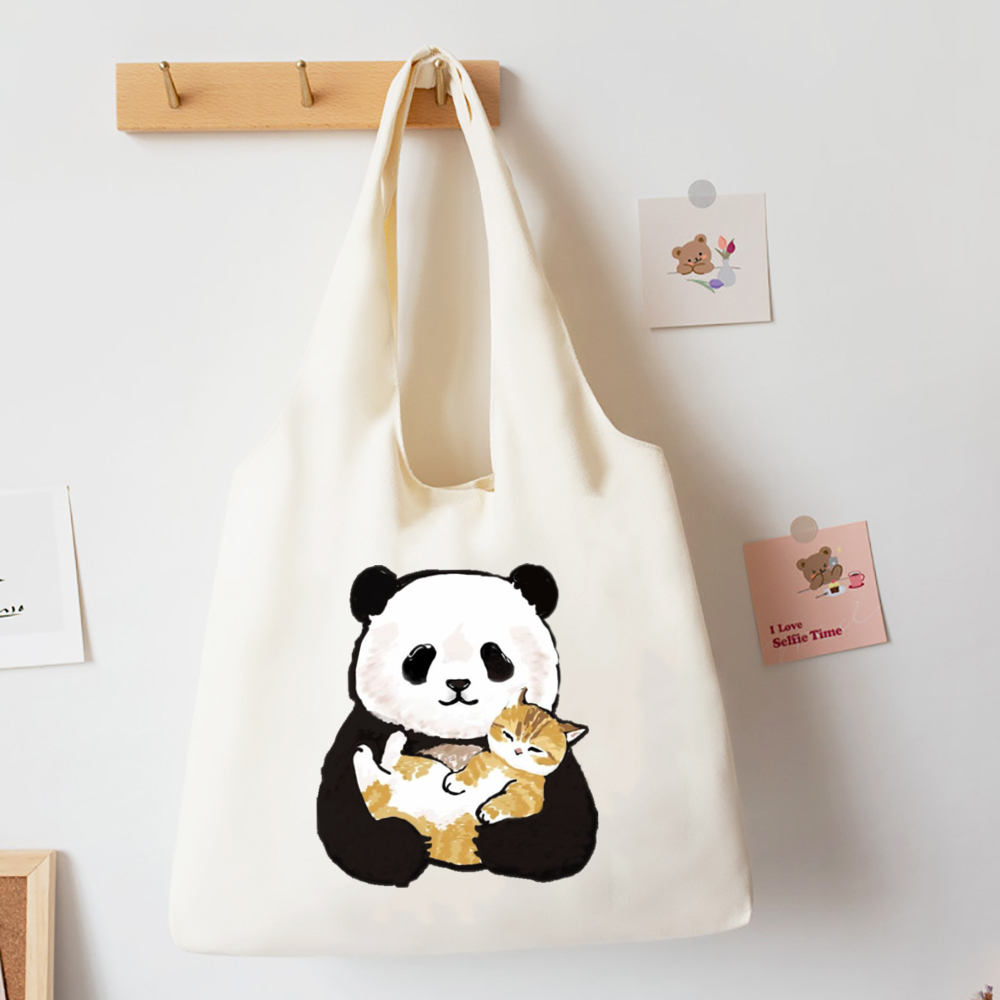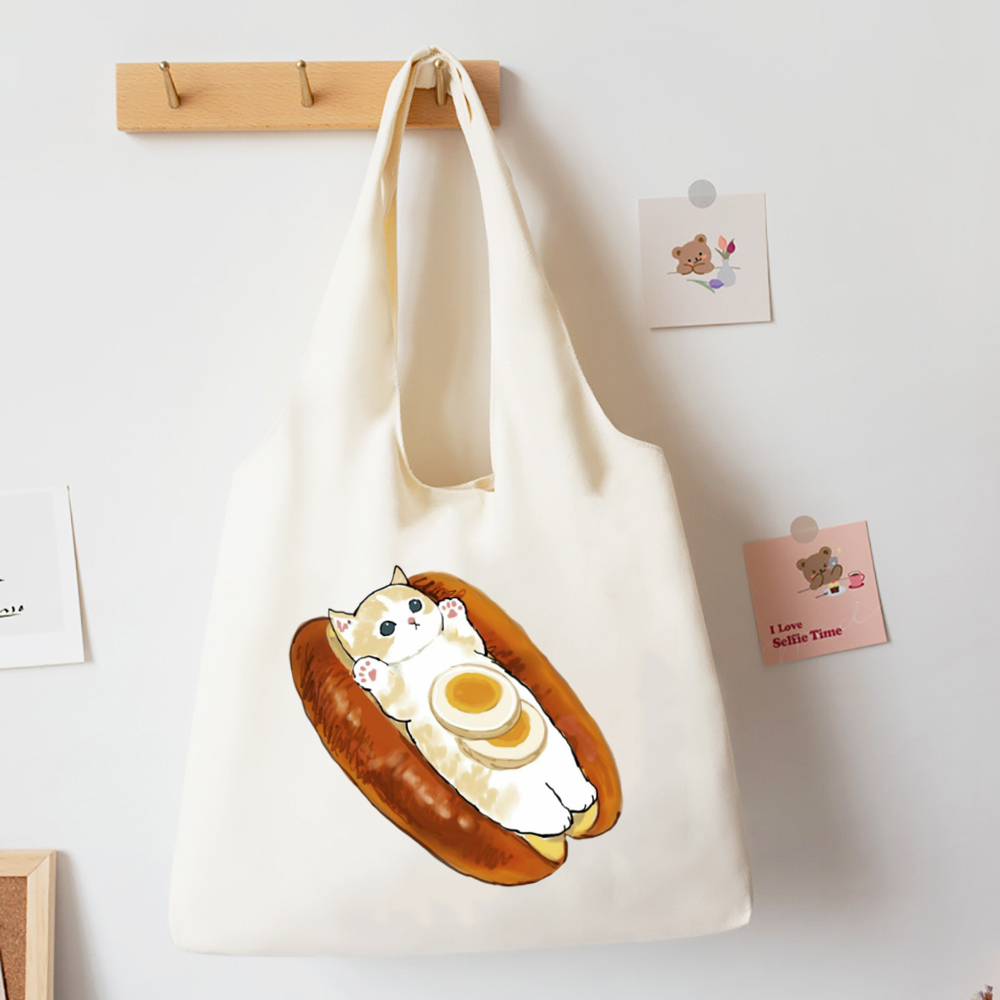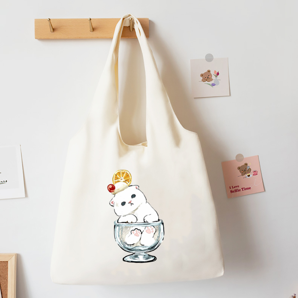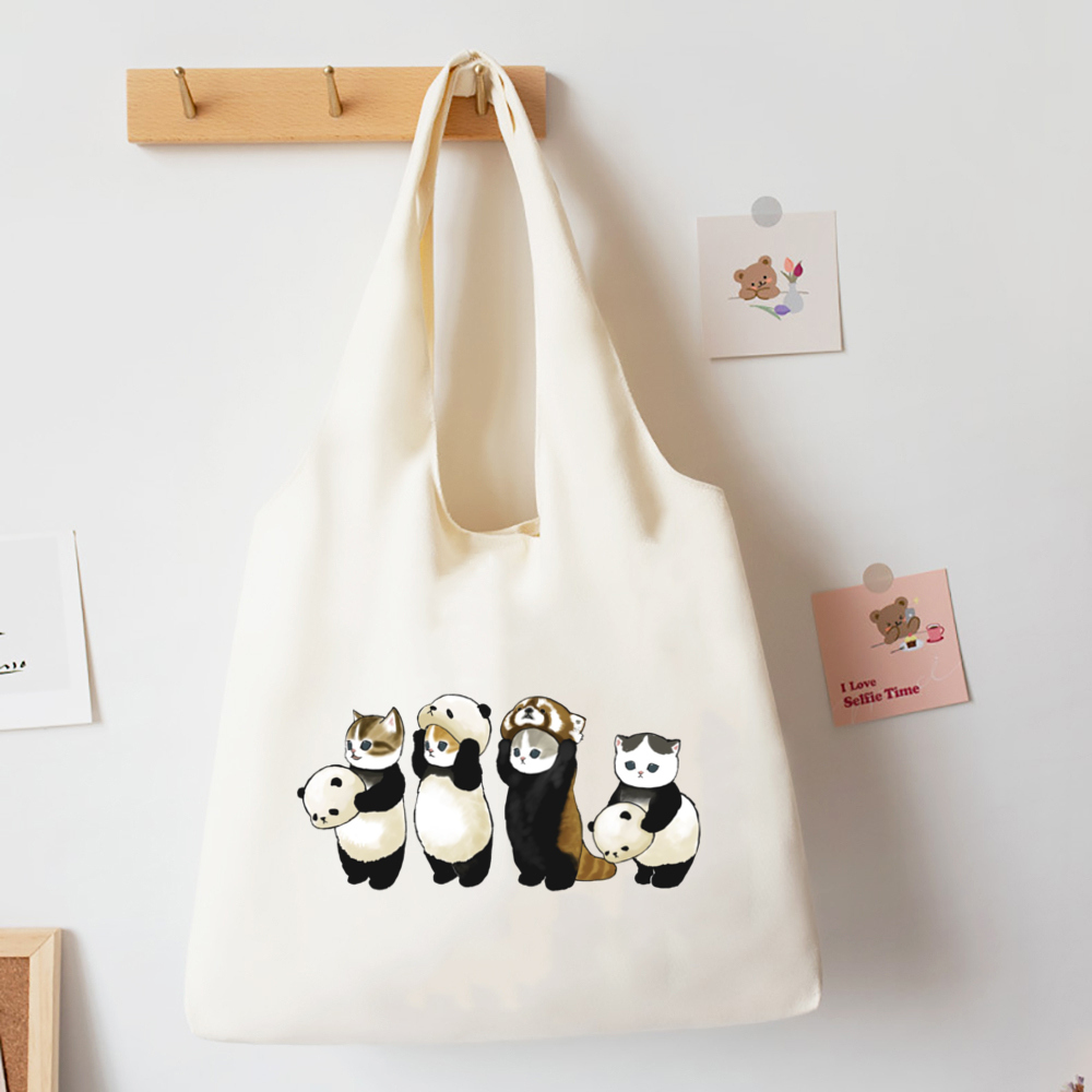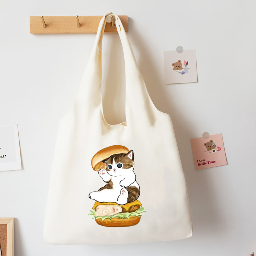 Cute Cat Print Canvas Tote Bag Casual Storage Bags Large Capacity Shopping Bag Women Totebag for Student Shoulder Bag 帆布包 Ins