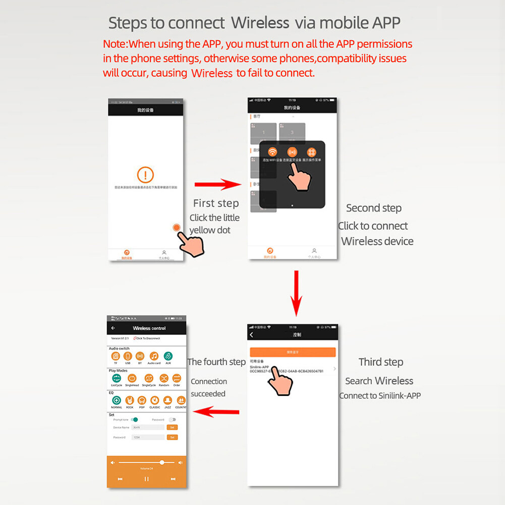 Unique functions: support Sini link-APP, modify Bluetooth-compatible name, set Bluetooth-compatible password, turn off/on the prompt sound