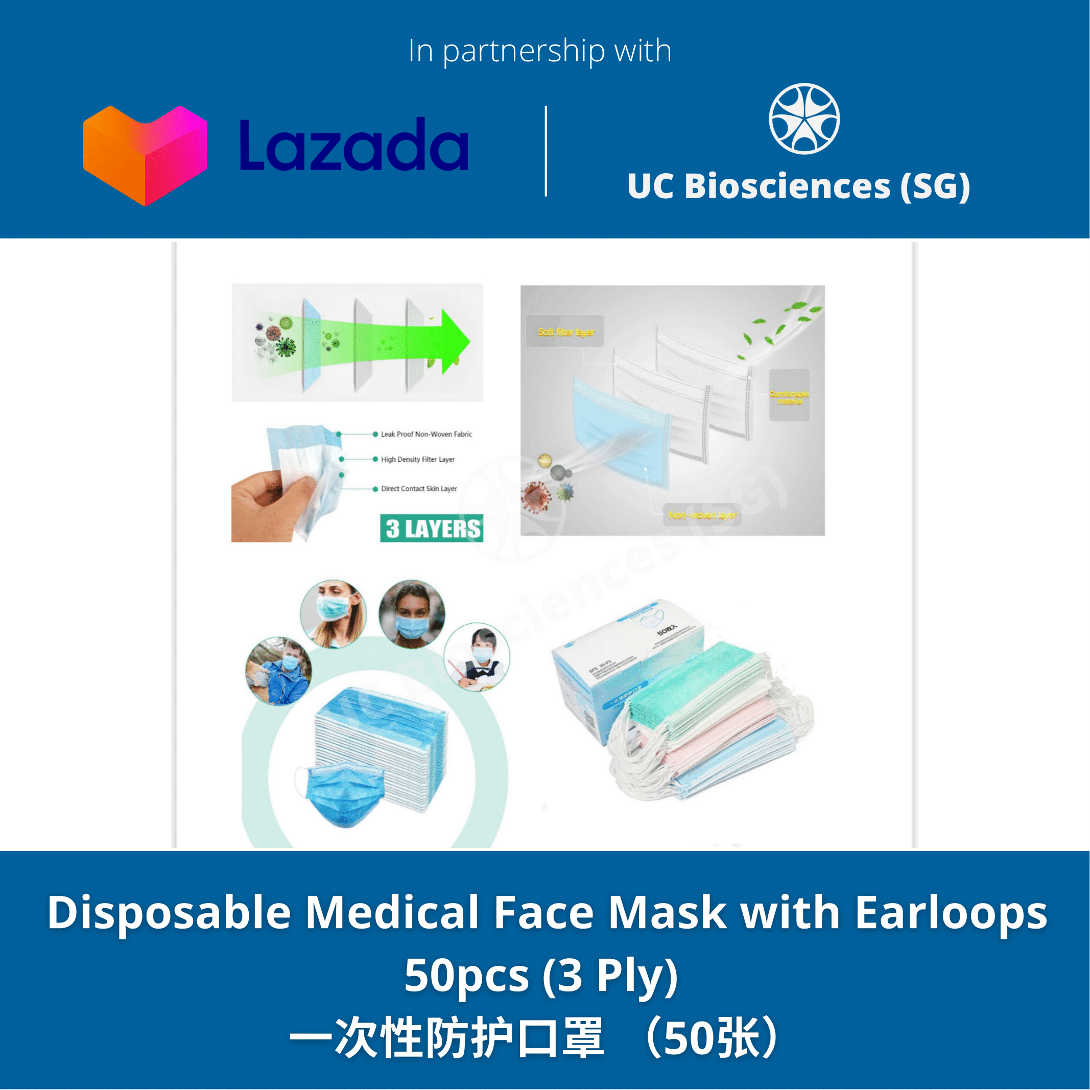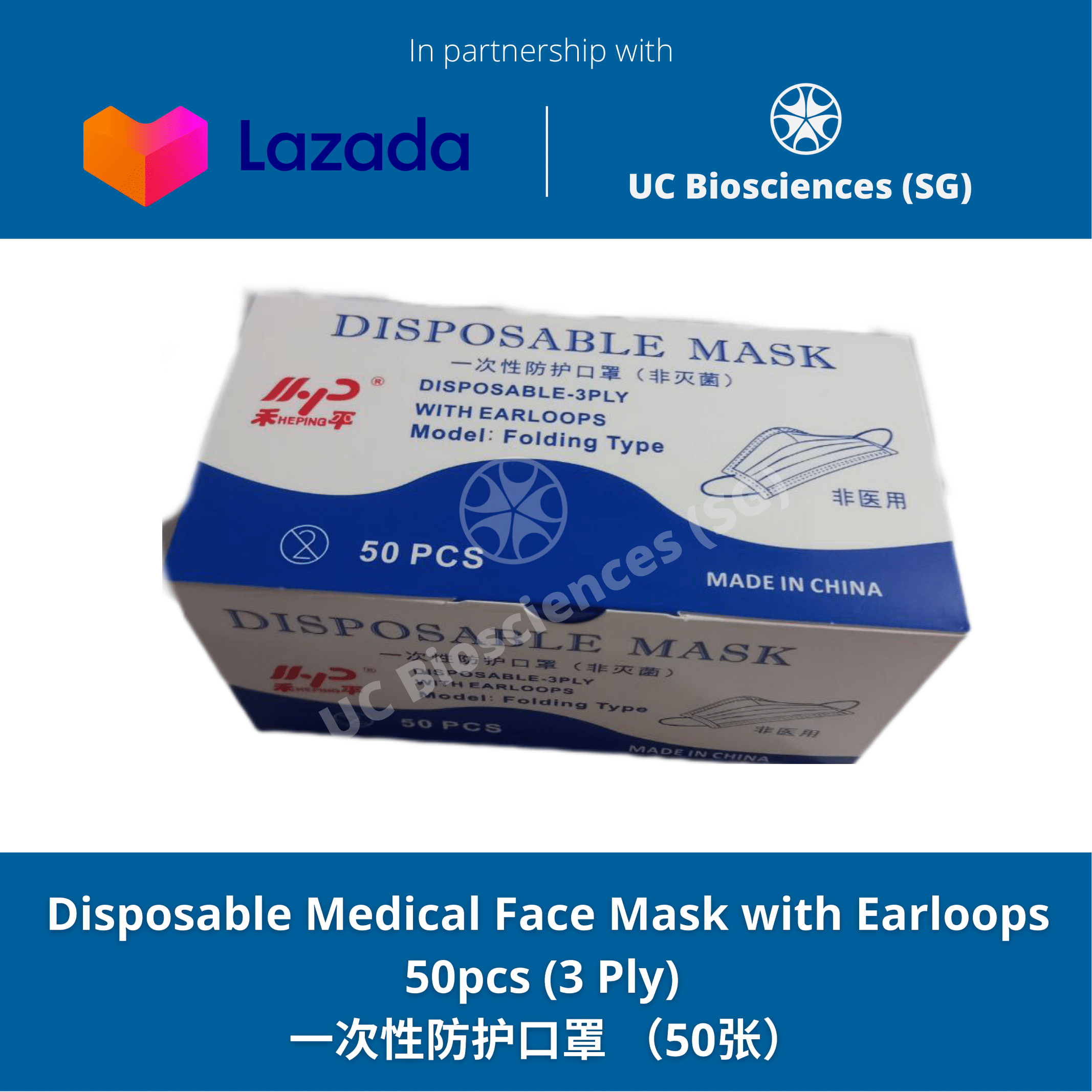 HePing Disposable Medical Face Mask with Earloops 50pcs (3 Ply)