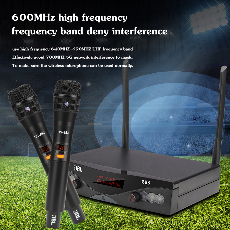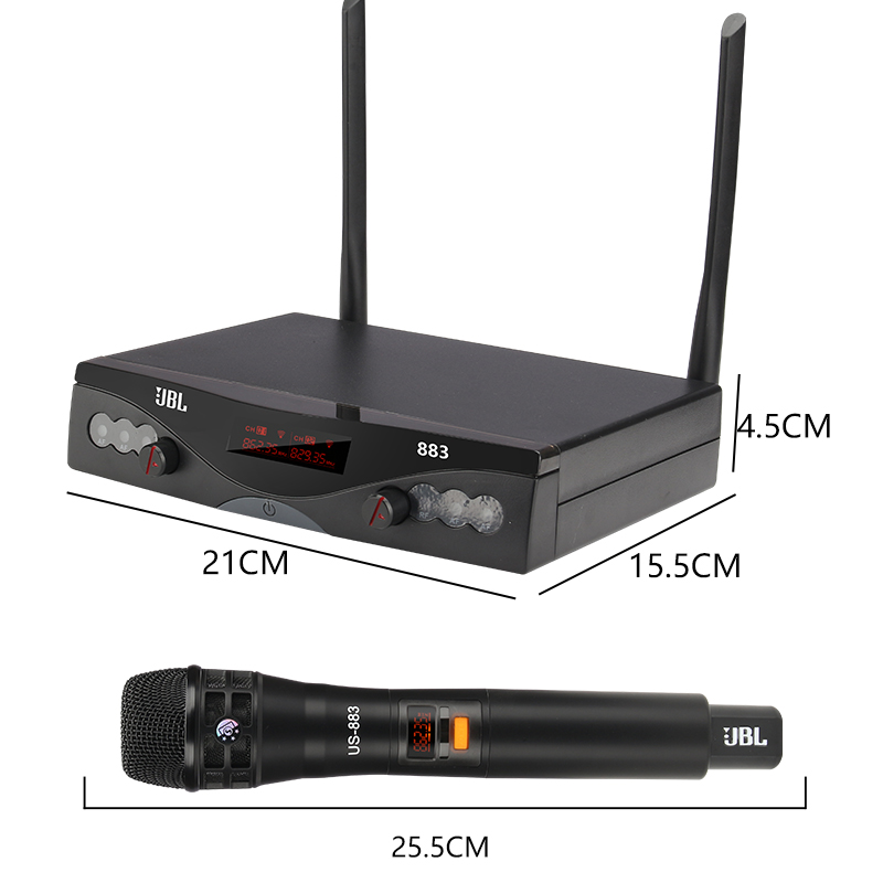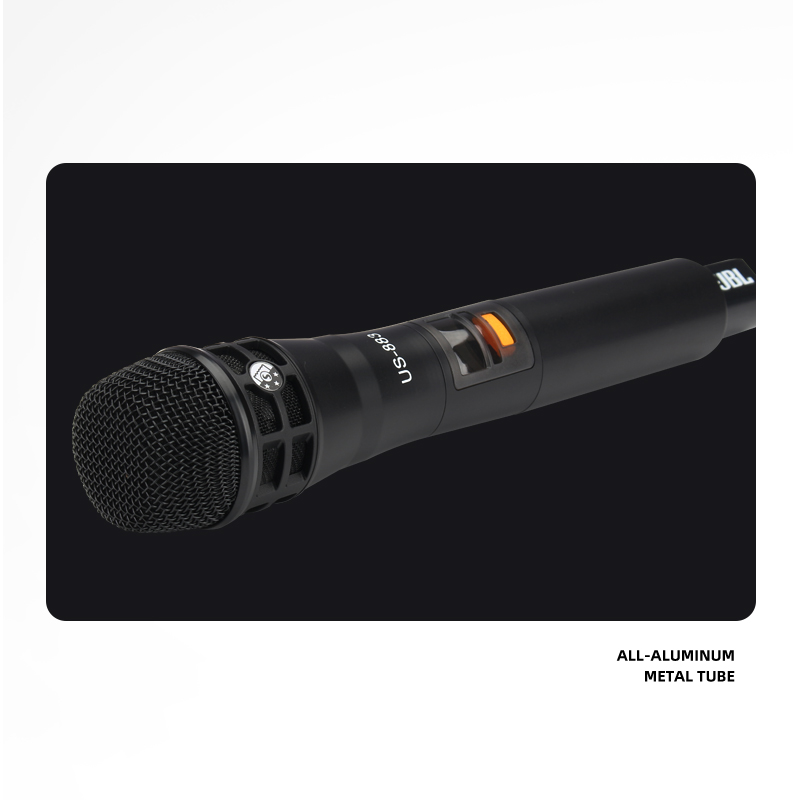 Wireless Microphone Floating Microphone Wireless Microphone System JBL_ Legendary Performance SPECIFICATION / FEATURE = Can be used at a distance of 100 meters = Wireless Microphone Floating Mic = Wireless Microphone System == Legendary Performance