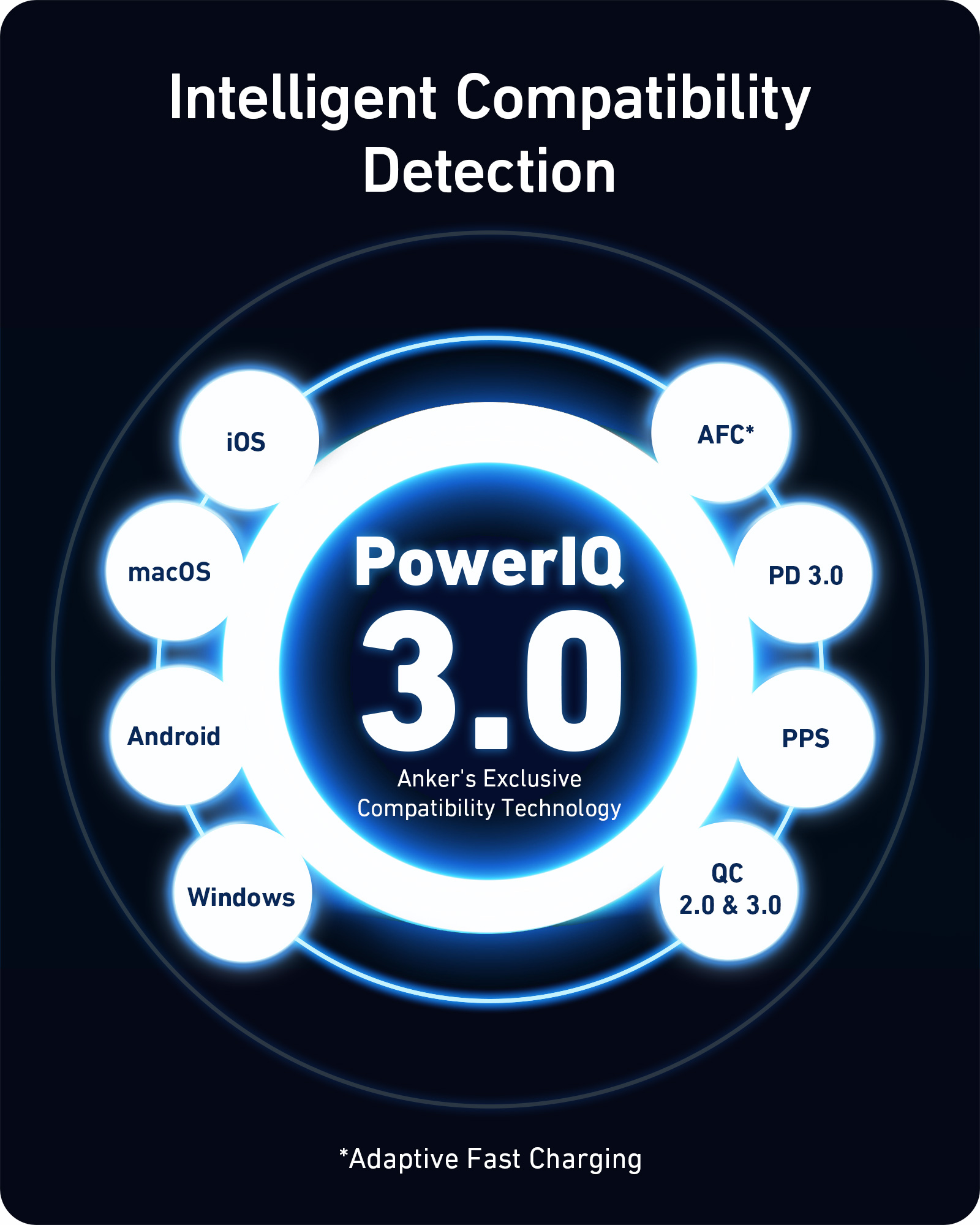 Dual Port: USB-C 1 + USB-C 2 (60W Max + 40W Max) / USB-C 1 + USB-A (80W Max + 18W Max) / USB-C 2 + USB-A (60W Max + 22.5W Max)