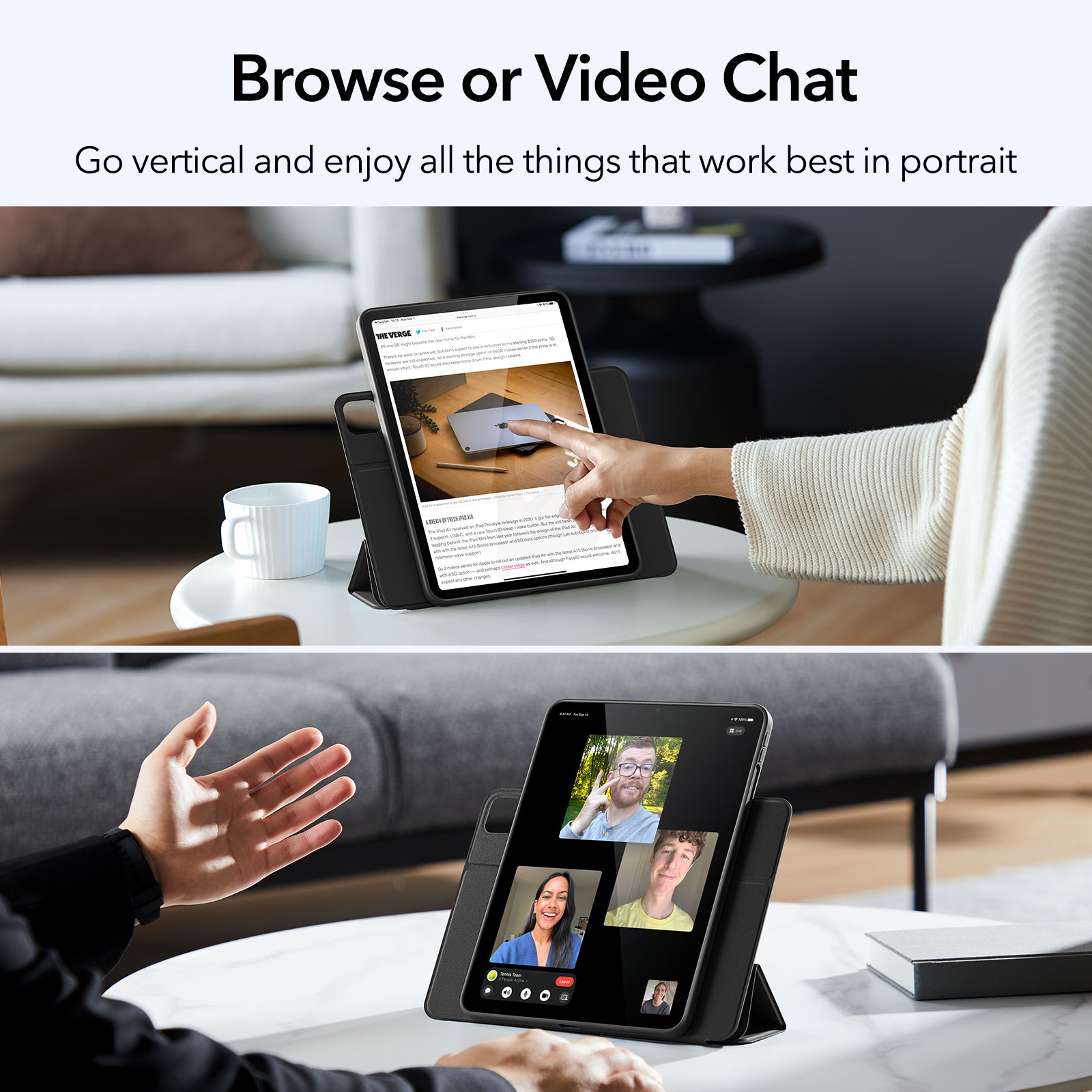 Powerful magnets keep the back case and cover securely attached when you’re using the stand while letting you instantly remove your iPad when you want to move freely.