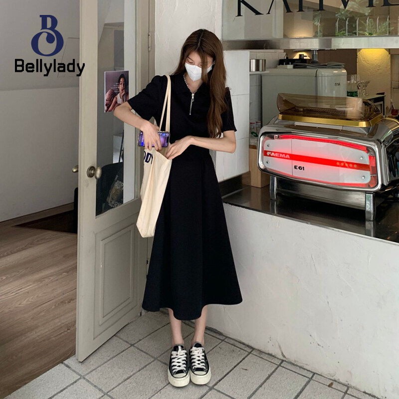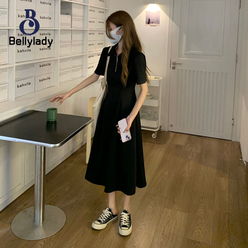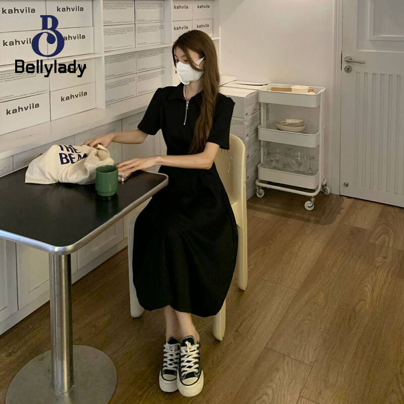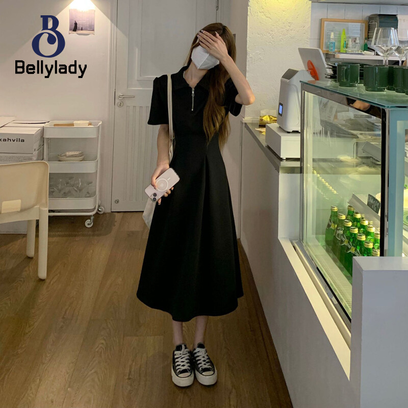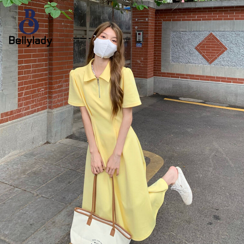 BellyLady Women Polo Slim Fit Dress Solid Color Short Sleeve High Waist Student Vacation Dress