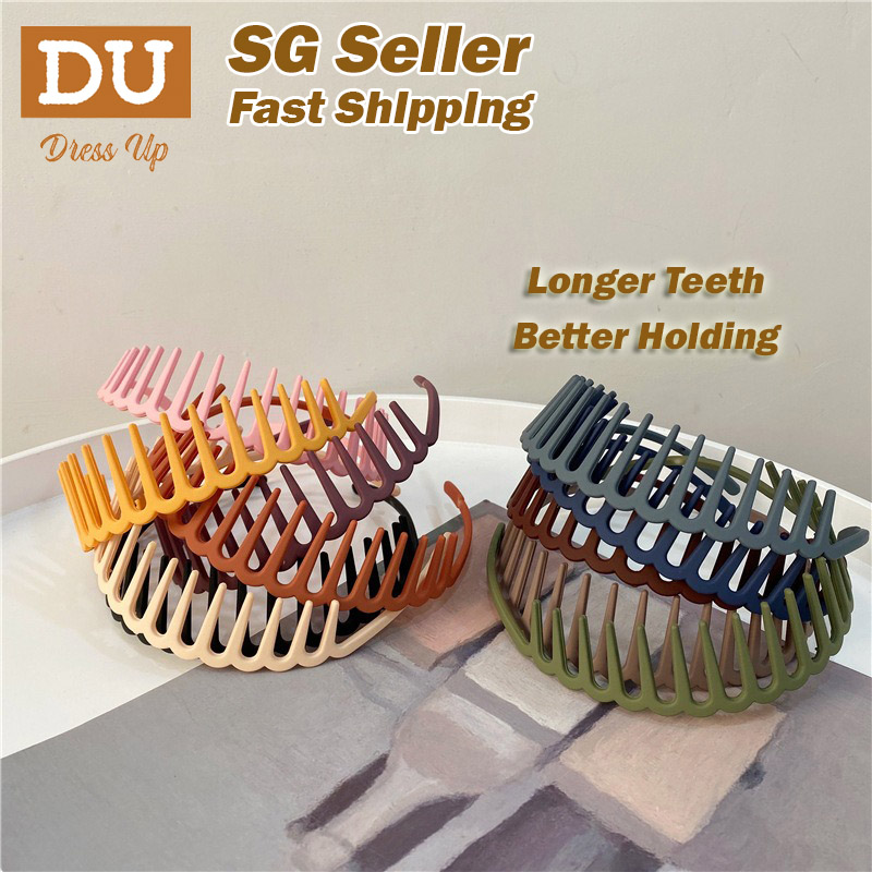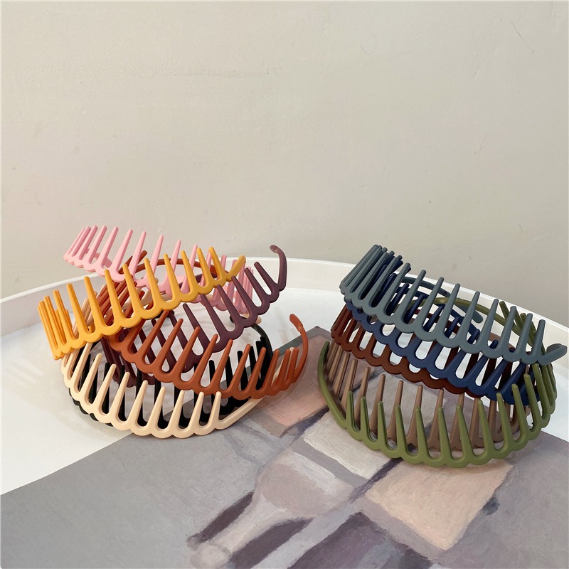 [SG|Comfy & Non-slip] 3.5cm Long Teeth Plastic Black Head Bands Headbands for Women, Women Hair Bands, Women's Hair Morandi Color Headbands for Women Wide Headbands for Women