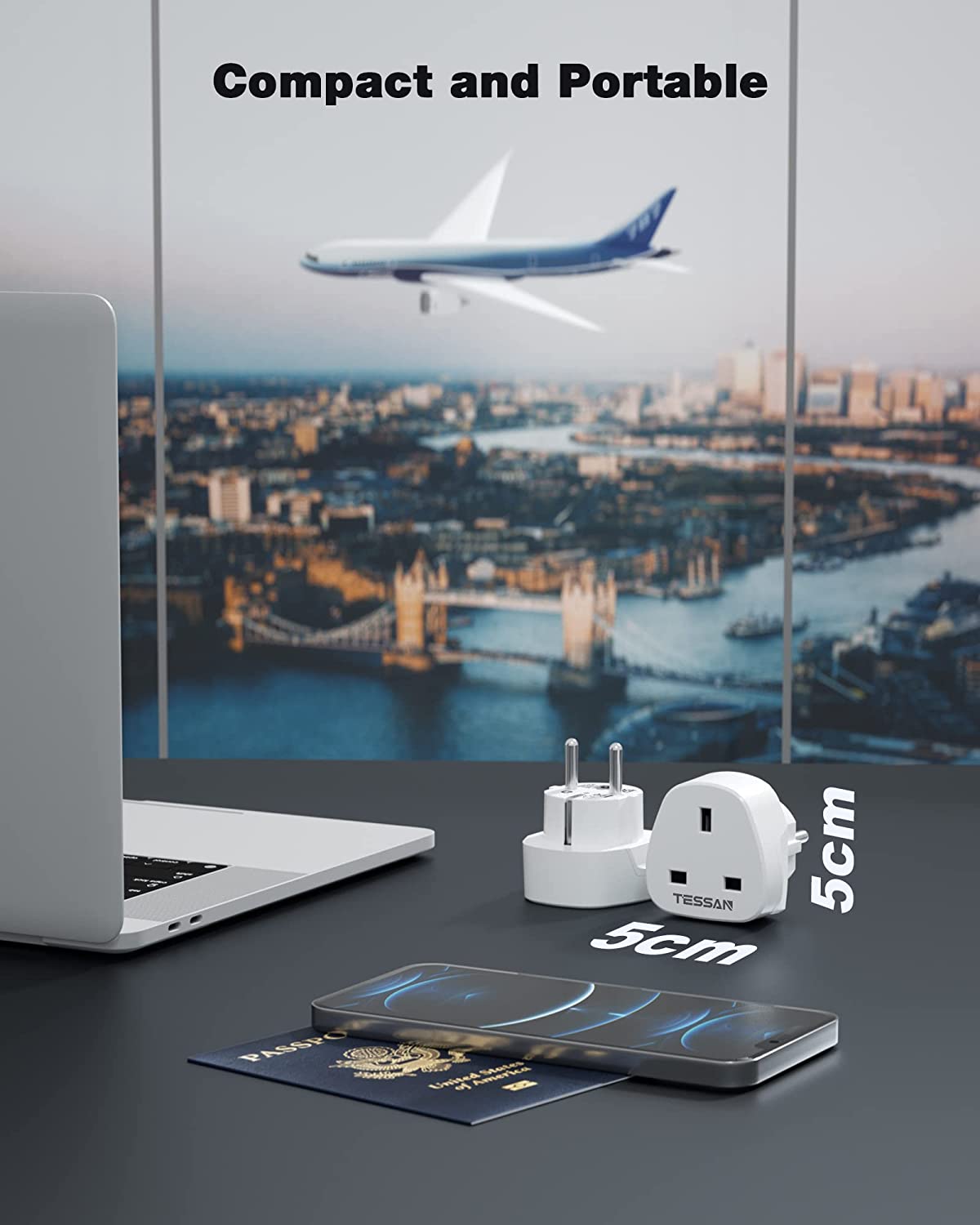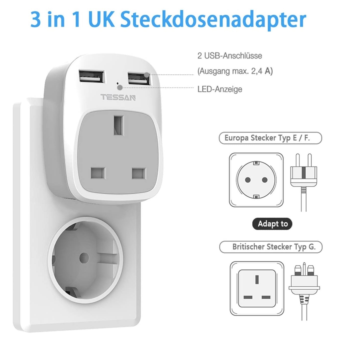 UK to European Plug Adapter: TSEEAN European plug adapter can extend a standard UK type G plug to EU type E/F outlet, idealing for charging electrical products such as mobile phone, tablet, camera etc when you are traveling in Europe