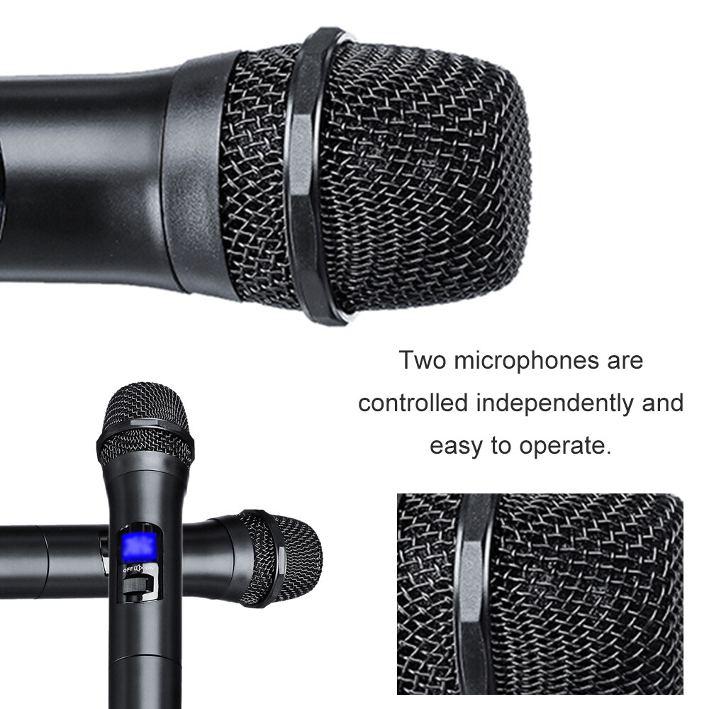 dodocool Karaoke Microphones UHF Professional 2 CH Cordless Dual Handheld Microphone Digital LCD Display Mic System Set for Party Wedding Church Meeting Speech