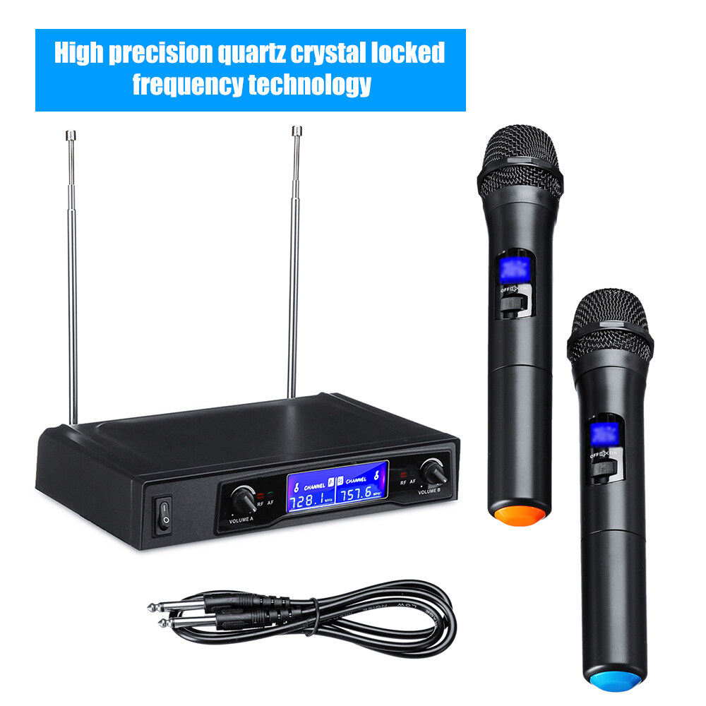 This is a reliable dual digital microphone system set that is easy to setup and use. It features cordless design, which is convenient to carry and will not restrict your movement, so that you are free from the interference of cluttered lines. It is perfect for stage performance, karaoke, public address (presentations, classes, conferences).