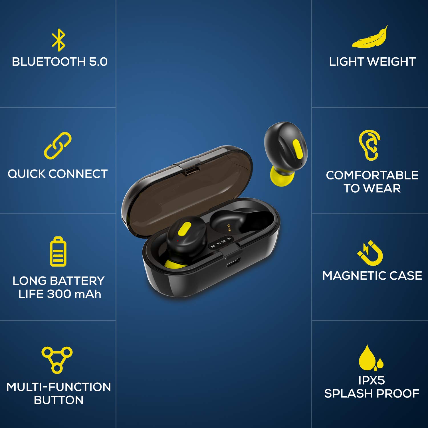 ?Ultra Light Wireless Earbuds that Weighs just 4 Grams each. The charging case for buds is sleek and Easy to carry.