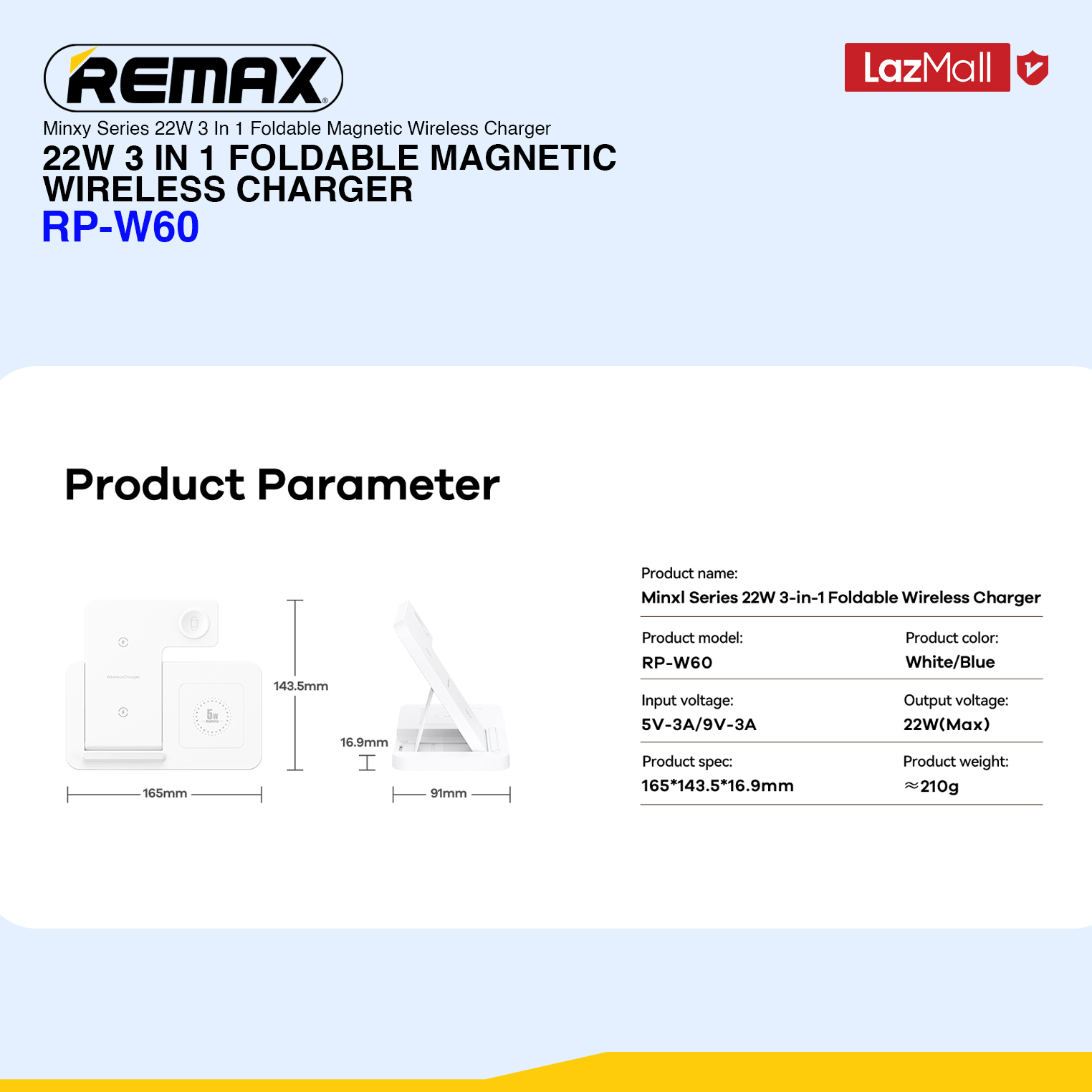 [Remax Energy] RP-W60 Minxy Series 22W 3 In 1 Foldable Magnetic QI Wireless Charger Stand
