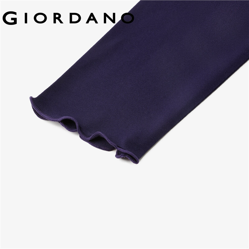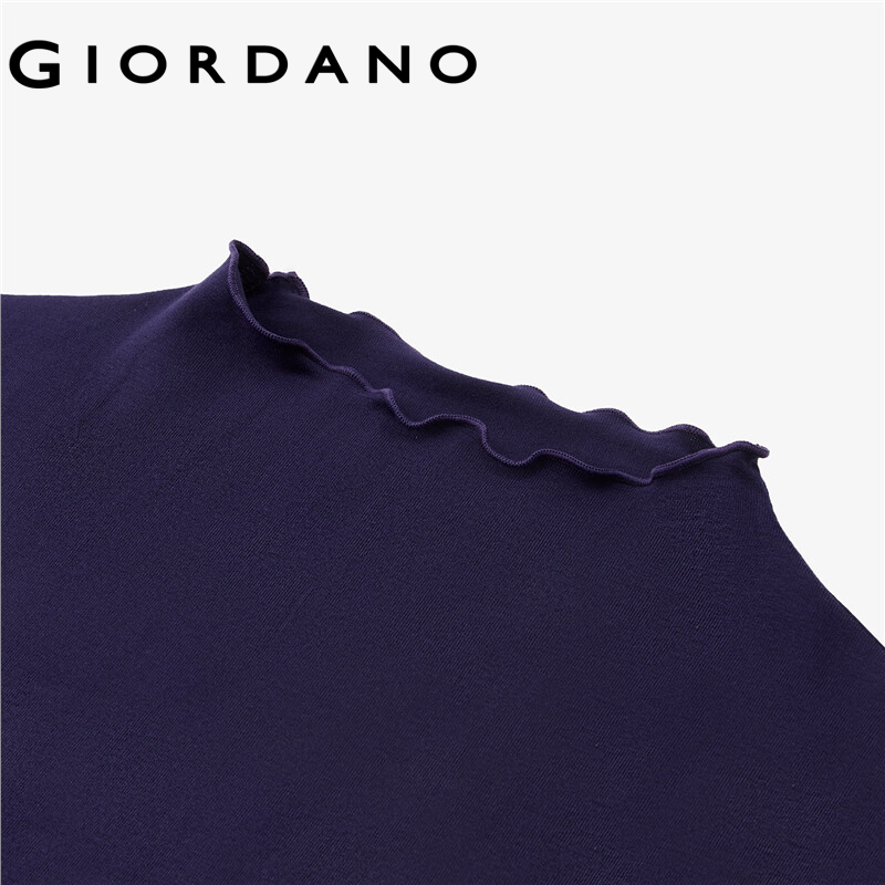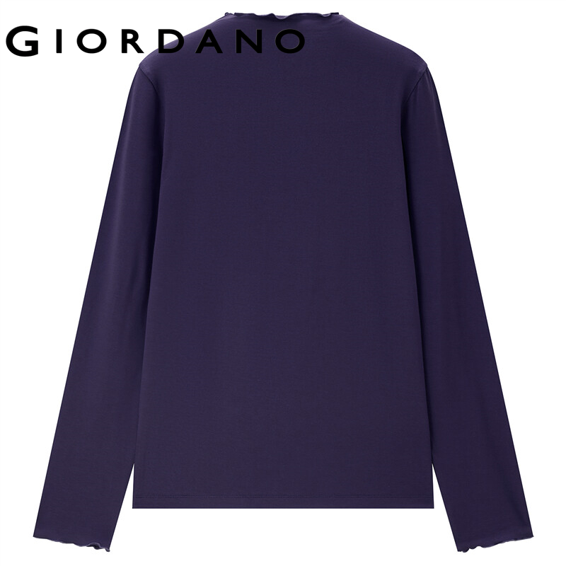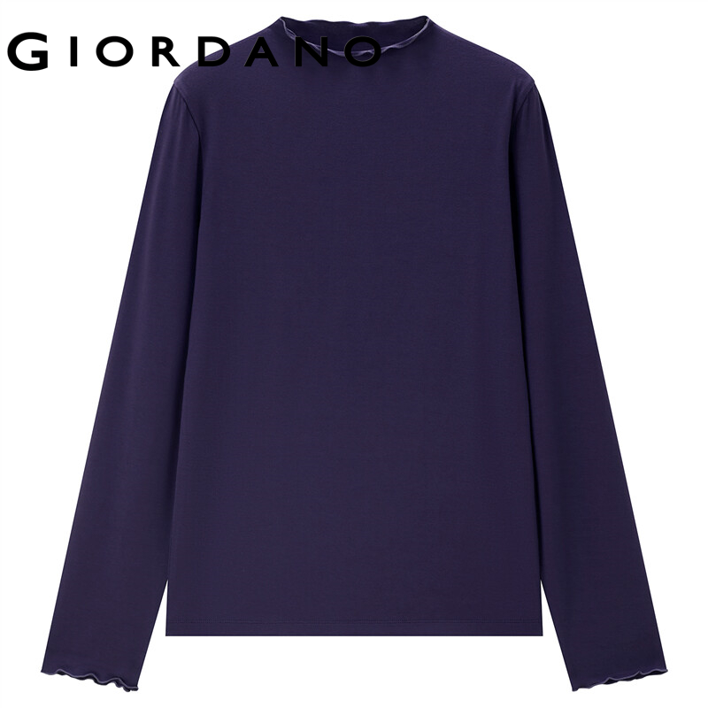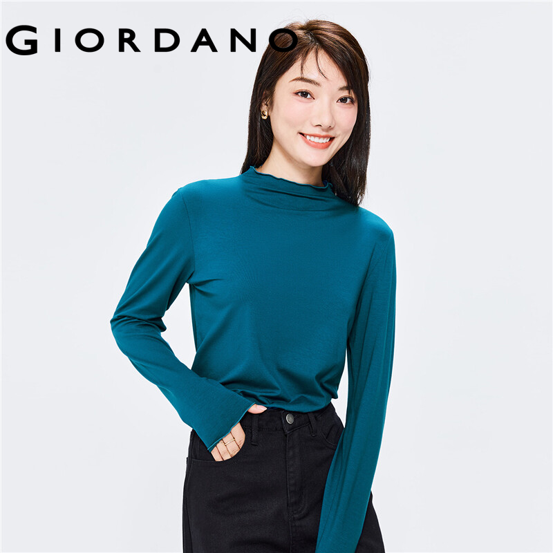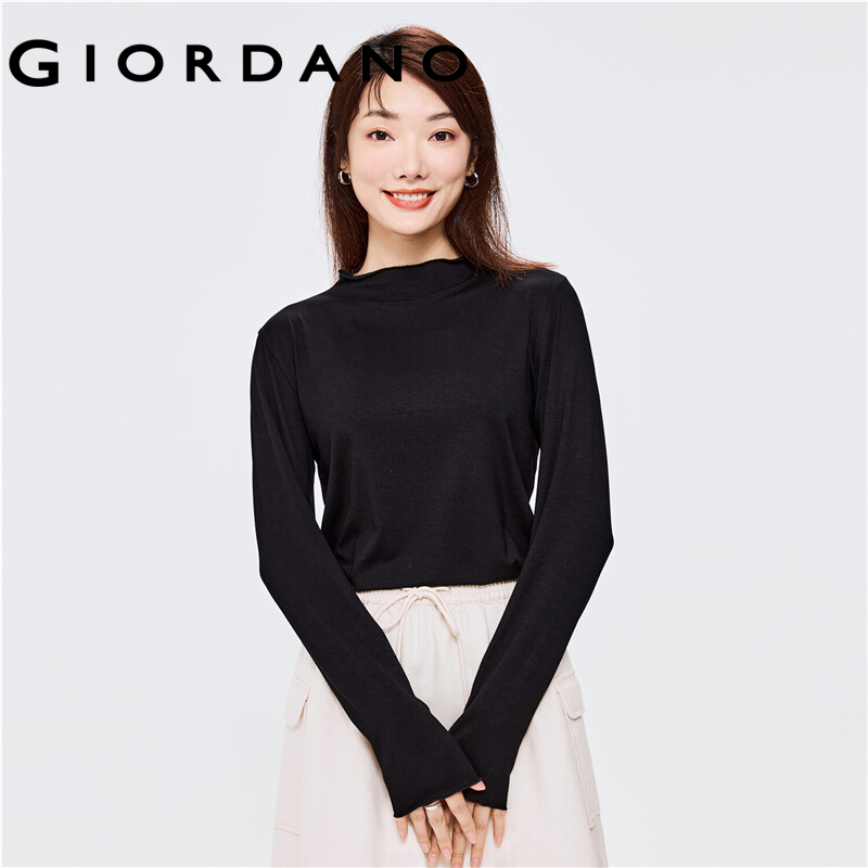 GIORDANO Women T-Shirts Stringy selvedge Edge Mockneck Stretchy T-Shirts Simple Plain Color Long Sleeve Casual Tee 13322901