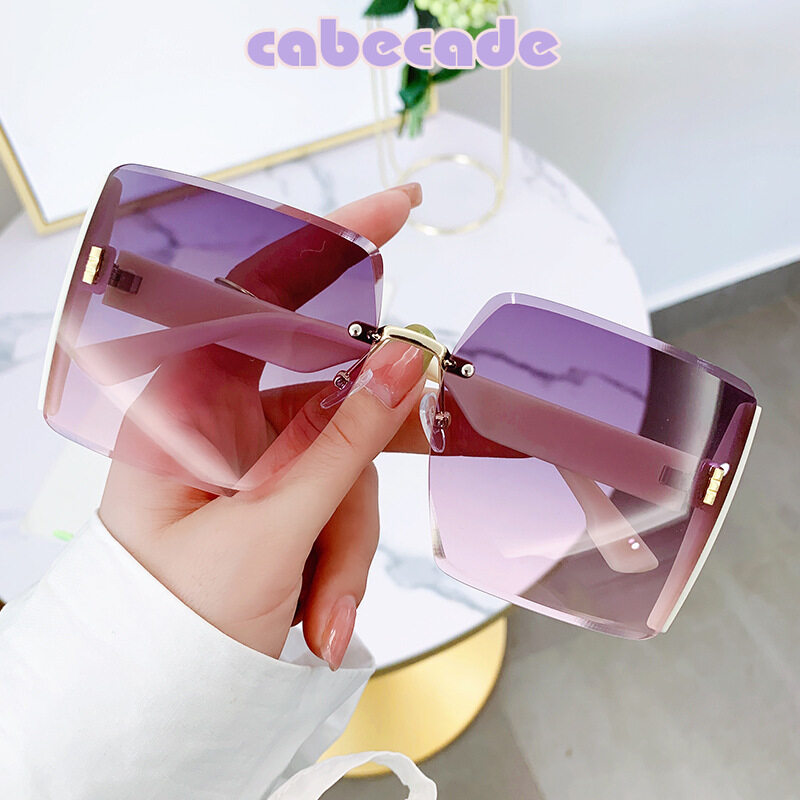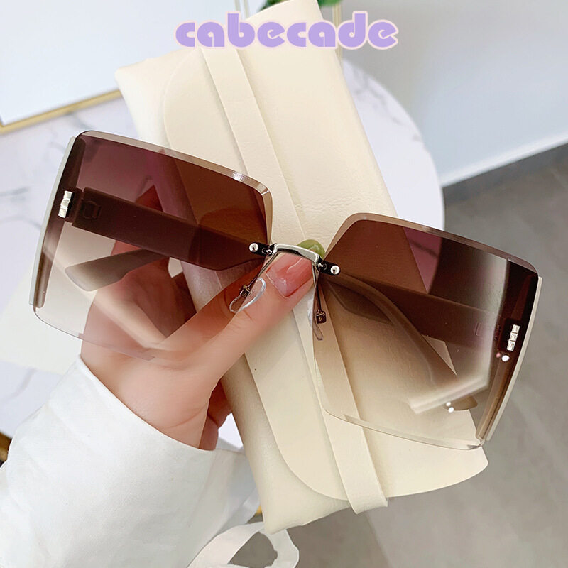 Cabecade 【high quality】 2022 new style sunglasses women's frameless cut-edge sunglasses European and American fashion large frame ultra-light sunshade mirror fashion net red sunglasses