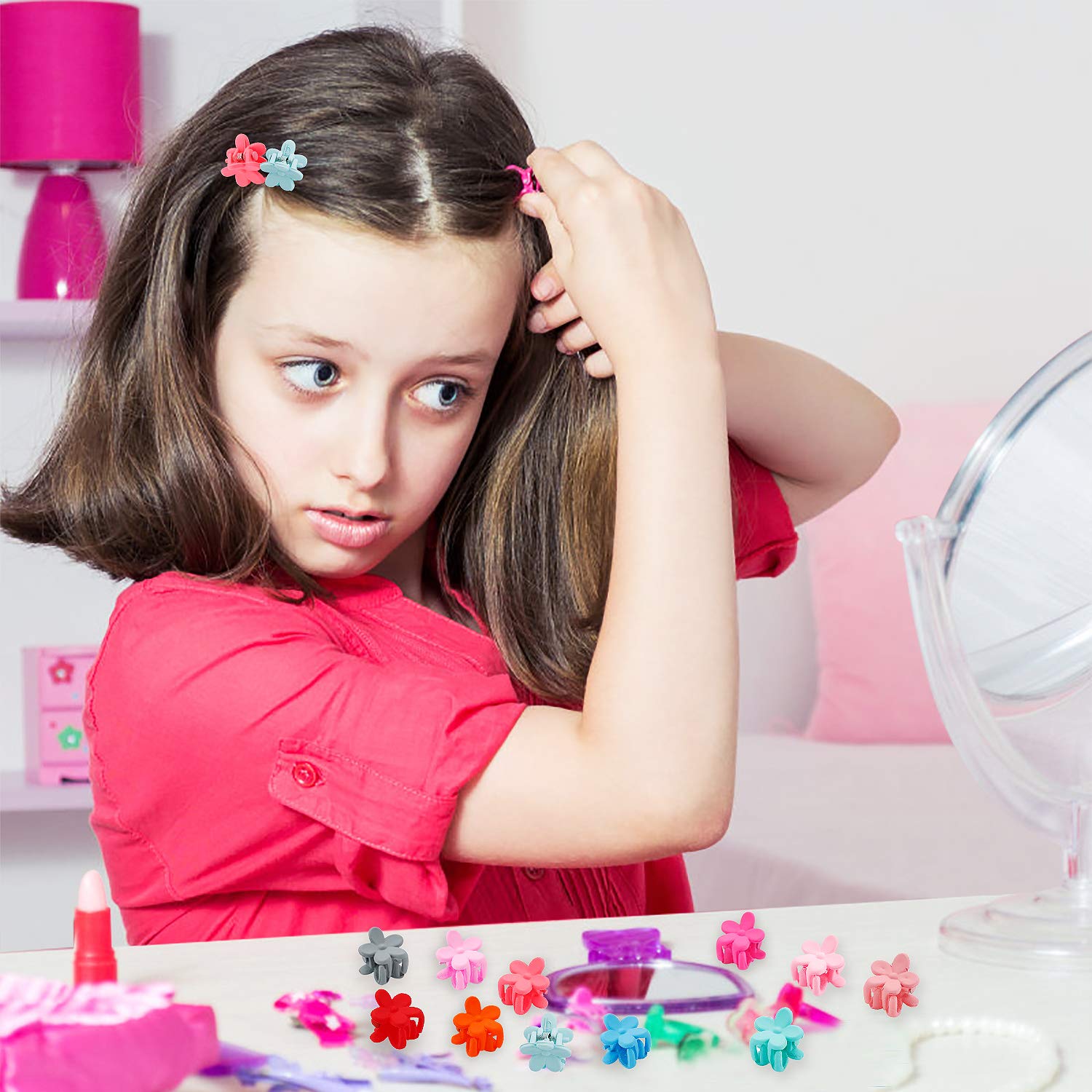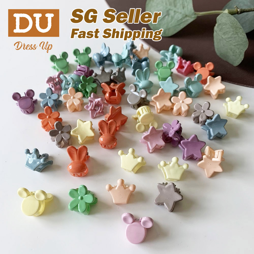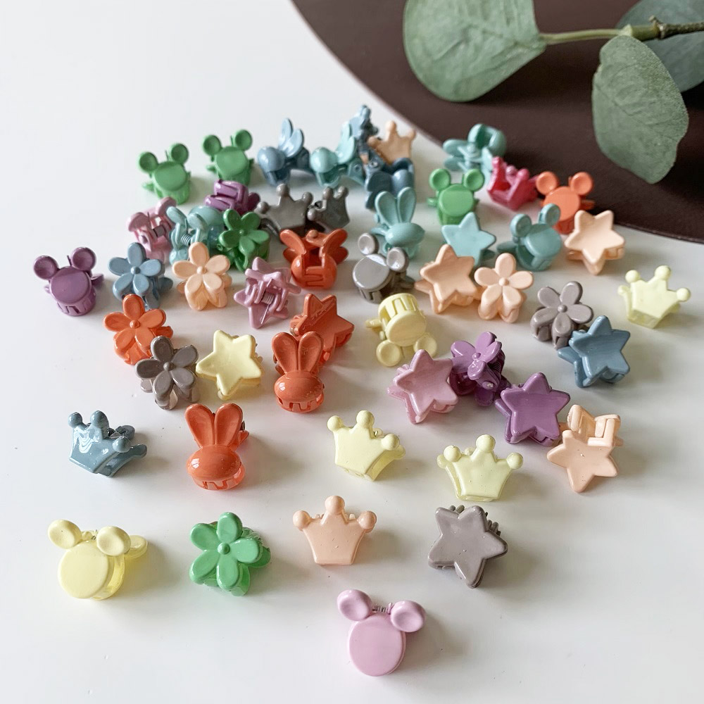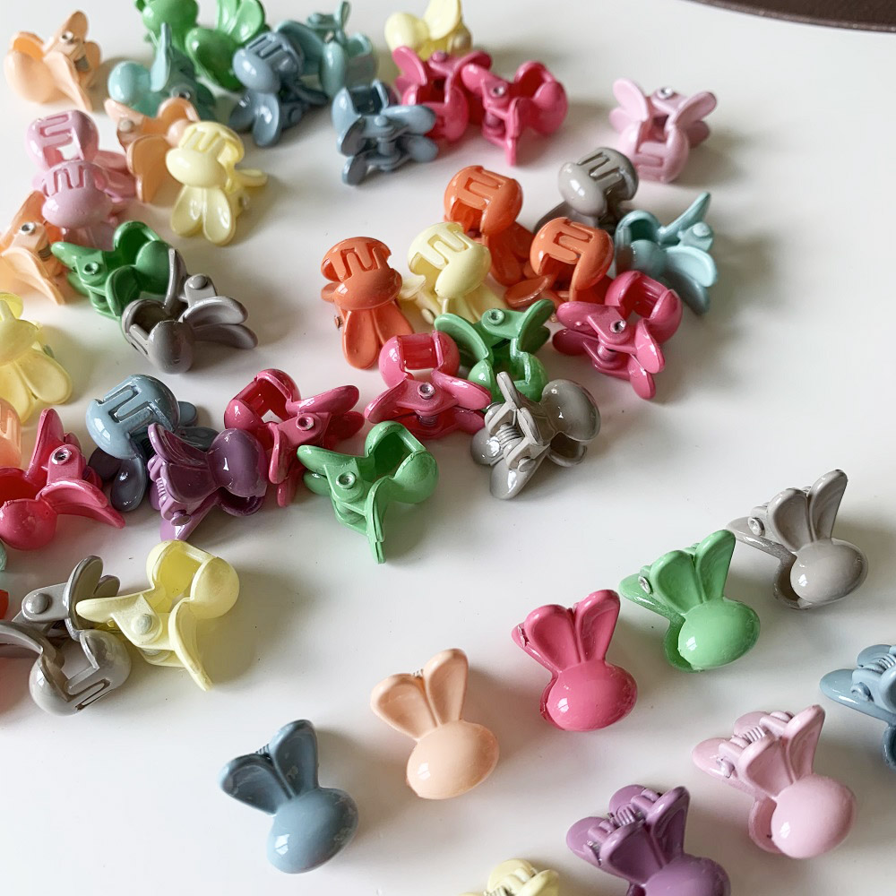 [SG❀Cute Kids] 50 Pcs Colorful Mini Hair Claw Clips Clamps Accessories for Baby Toddler Girls Decorative Bun Thin Hair, Assorted Colors in Bunny & Flower Shape