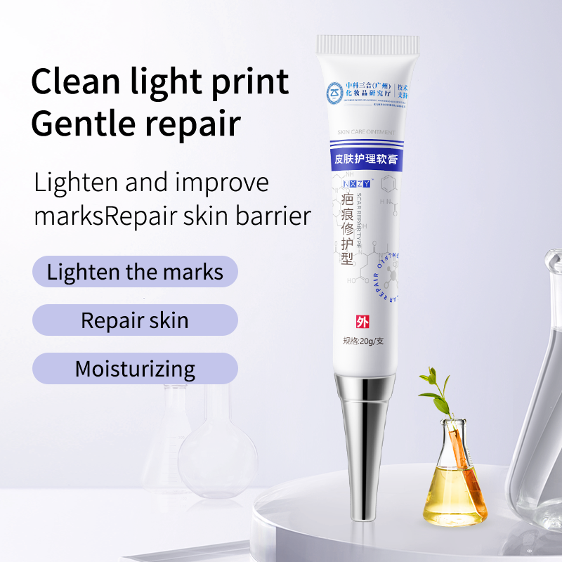 Product Name: Scar Repair OintmentProduct specification: 20gProduct weight: 0.0340kgProduct ingredients: polypeptide, ceramide, chitin, glycogen, cooling agent, purified water, carbomer, triethanolamineProduct Highlight: Scar RepairPreservation method: sealed, stored at room temperature, and handled with care.