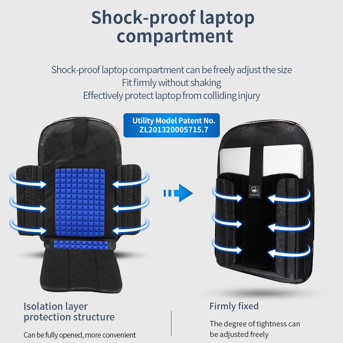 4. Unimaginable 25L large capacity design & Muti-functional pockets: main compartment, independent 15.6 inch laptop compartment and shockproof gasbag laptop compartment ;