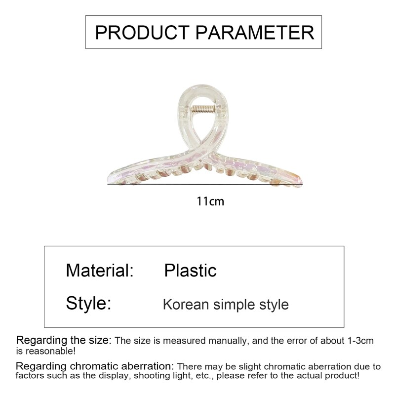 Features:Women Hair Claw Hairpin Clips Hair Styling Tools Women Girls Hair Accessories Notice:For manual measurement, please allow 1-3cm error Size:11cm Material:plastic Package Includes:a pc Hairpin Size: please allow 1-2cm differs due to manual measurement, thanks. Note: Due to the difference between different monitors, the picture may not reflect the actual color of the item. We guarantee the style is the same as shown in the pictures, but not the same performance on different bodies as on the model. Thank you!