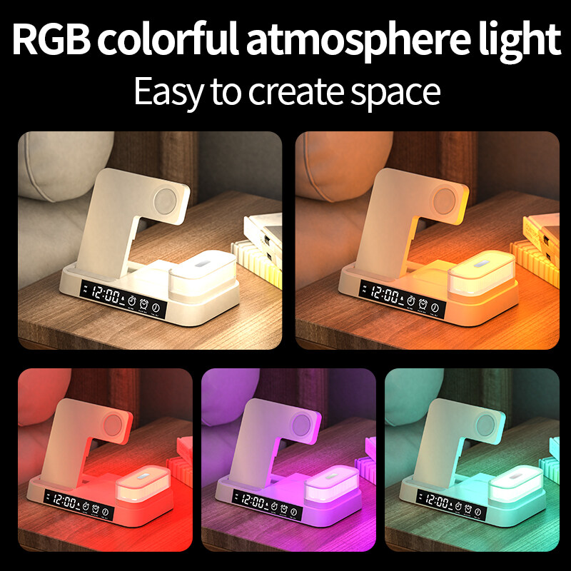 HOCE 30W 3 in 1 Qi Wireless Charger For iPhone 14 13 12 11 Pro Max XR XS X Apple Watch 7 6 5 4 3 2 SE Alarm Clock Fast Charging Station With LED Light For Airpods Pro 3