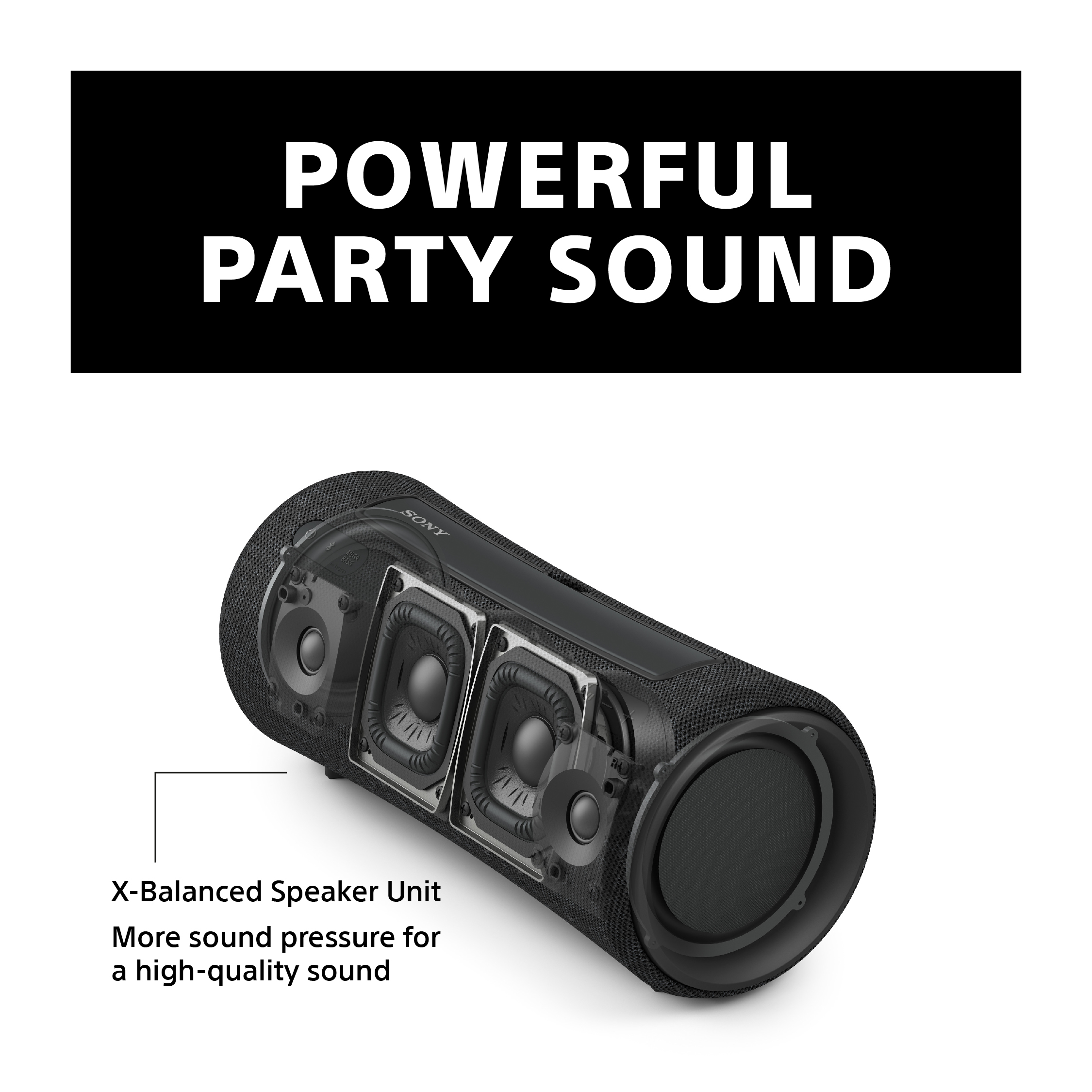 With Party Connect you can combine up to 100 compatible wireless speakers with BLUETOOTH® technology and sync your music so everyone dances to the same beat. Or, Stereo Pair you can connect two speakers wirelessly for wider stereo sound. Both features are activated in the Sony | Music Center app.
