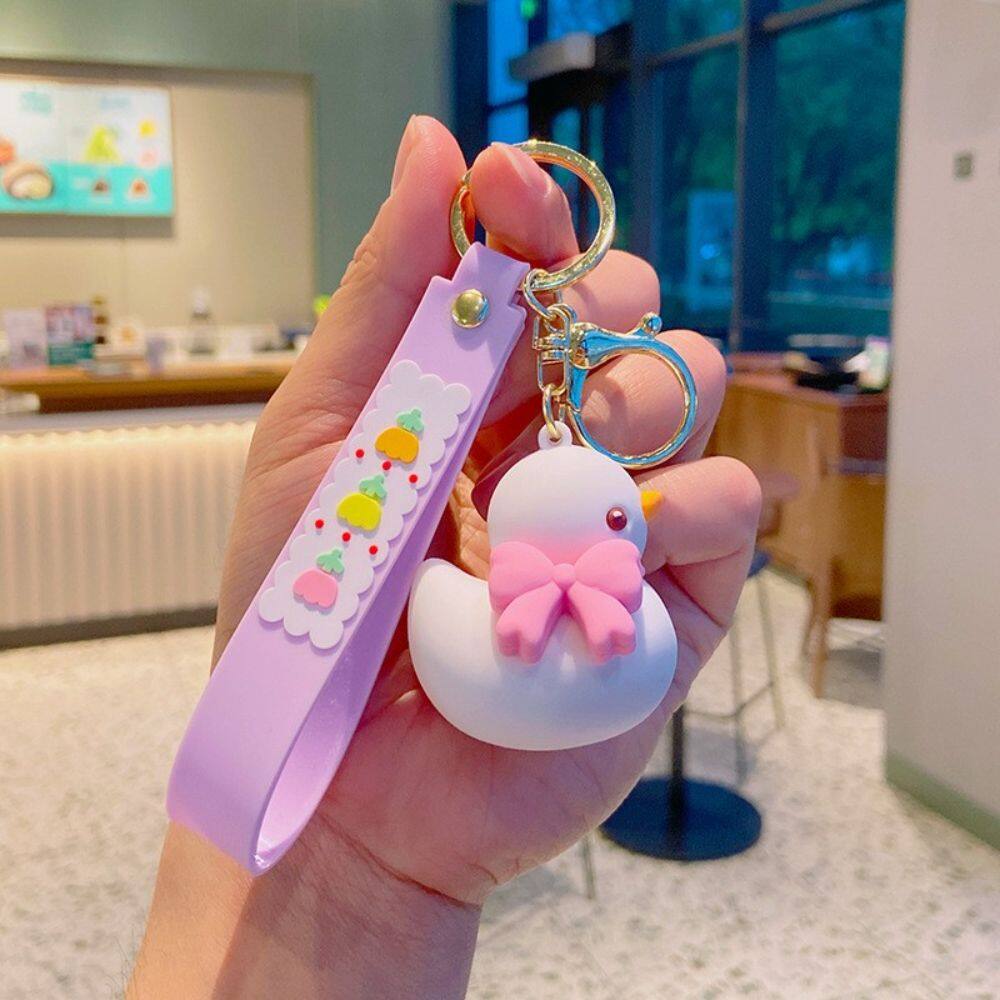 HUIHEYU Cute Exquisite Gifts Couple Car Key charms Doll Key Holder Backpack Pendant Bow Tie Duck Keychain Bag Ornaments Wristlet Keychain