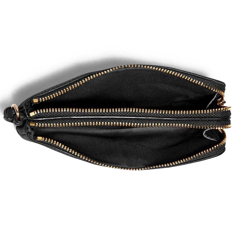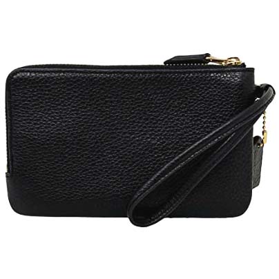 Coach Wristlet In Gift Box Small Wristlet Leather Double Corner Zip Black # 6649