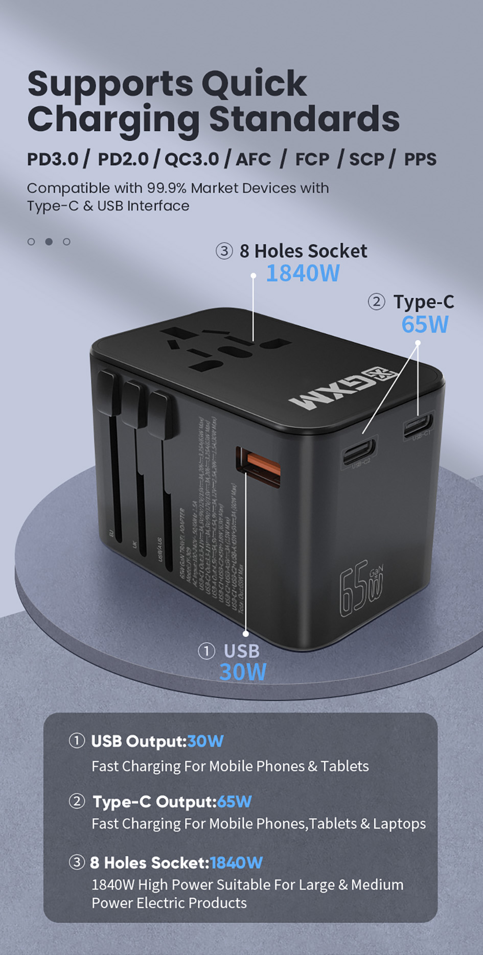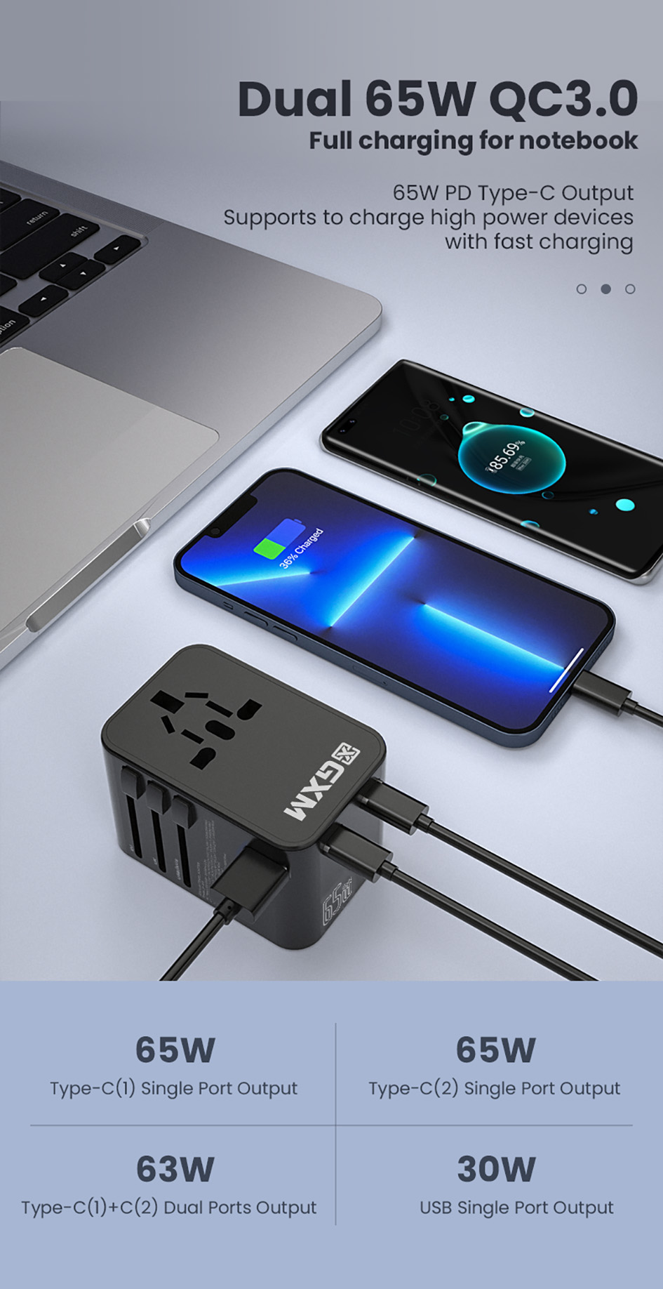 65W Fast Charging Travel Adapter