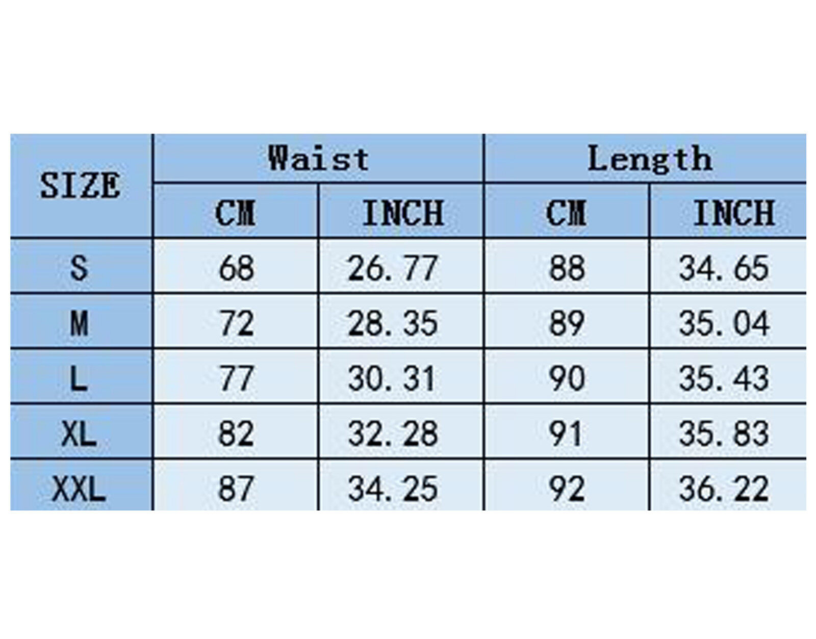 Size:XXL US Size:10-12 UK Size:14-16 EU Size:40-42 Waist:87cm/34.25'' Length:92cm/36.22''