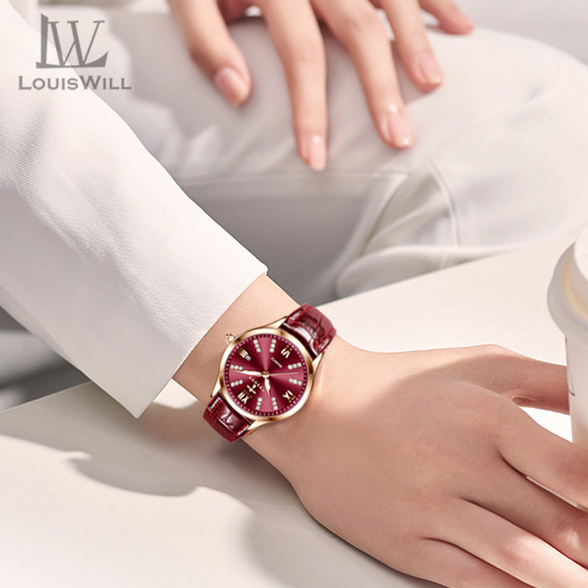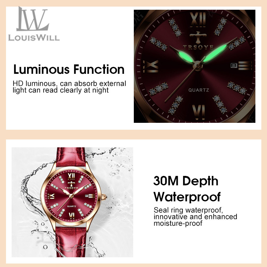 LouisWill Women Watches Diamond Casuals Retro Leather Strap Watches Quartz Watches Calendar Dial Luminous Pointer Watches 3ATM Waterproof Watches Business Wristwatch for Women Ladies
