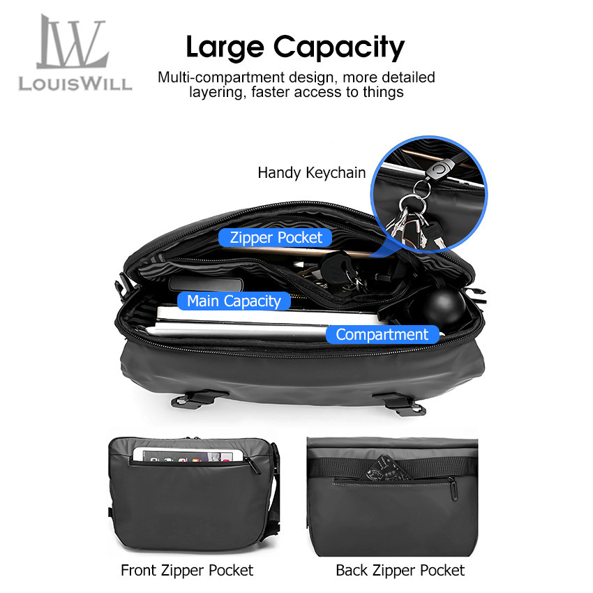 LouisWill Men's Crossbody Bags Shoulder Bag Oxford Cloth Waist Beg Men Bag Sports Bag Travel Bag with Water Resistant Multifunctional Chest Bag Anti-theft Sling Bag Shoulder Packs Pouch for Travel Spo