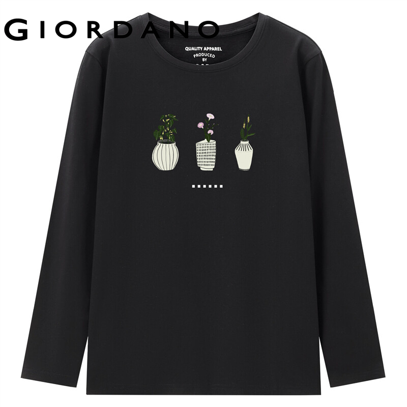 GIORDANO Women ARTAND Series T-Shirts Spring Fall Long Sleeve Print T-Shirts Quality 100% Cotton Casual Simple Tee 99392099