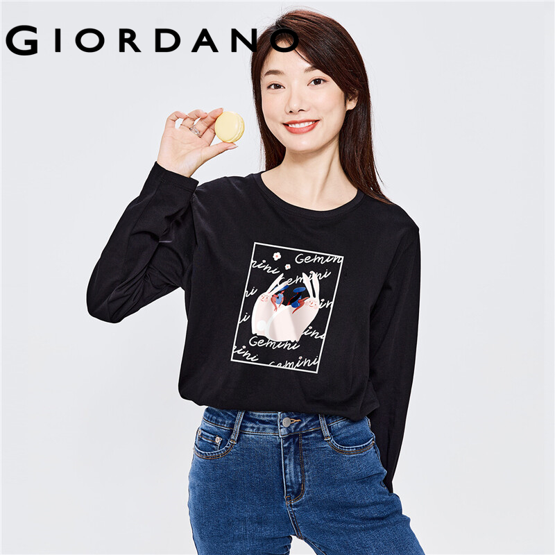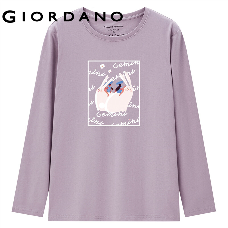 GIORDANO Women ZiLi Series T-Shirts Long Sleeve Spring Fall Casual T-Shirts Quality 100% Cotton Print Graphic T-Shirts 99392100