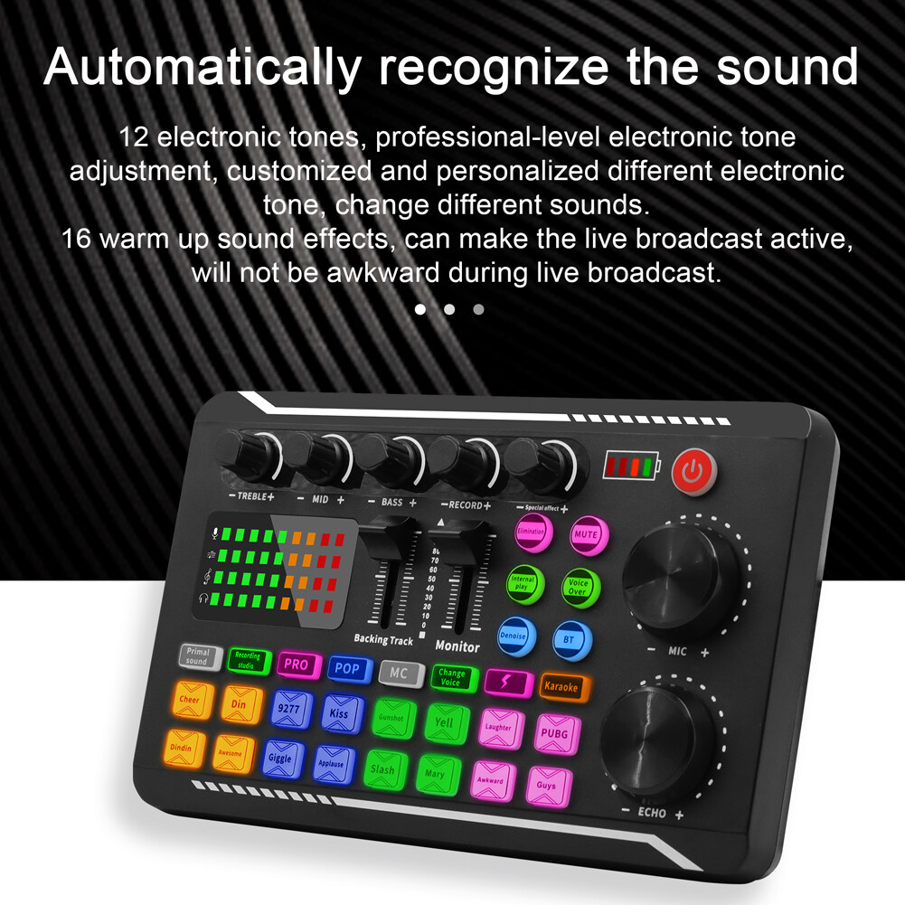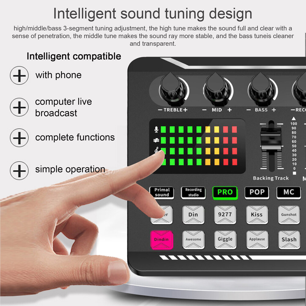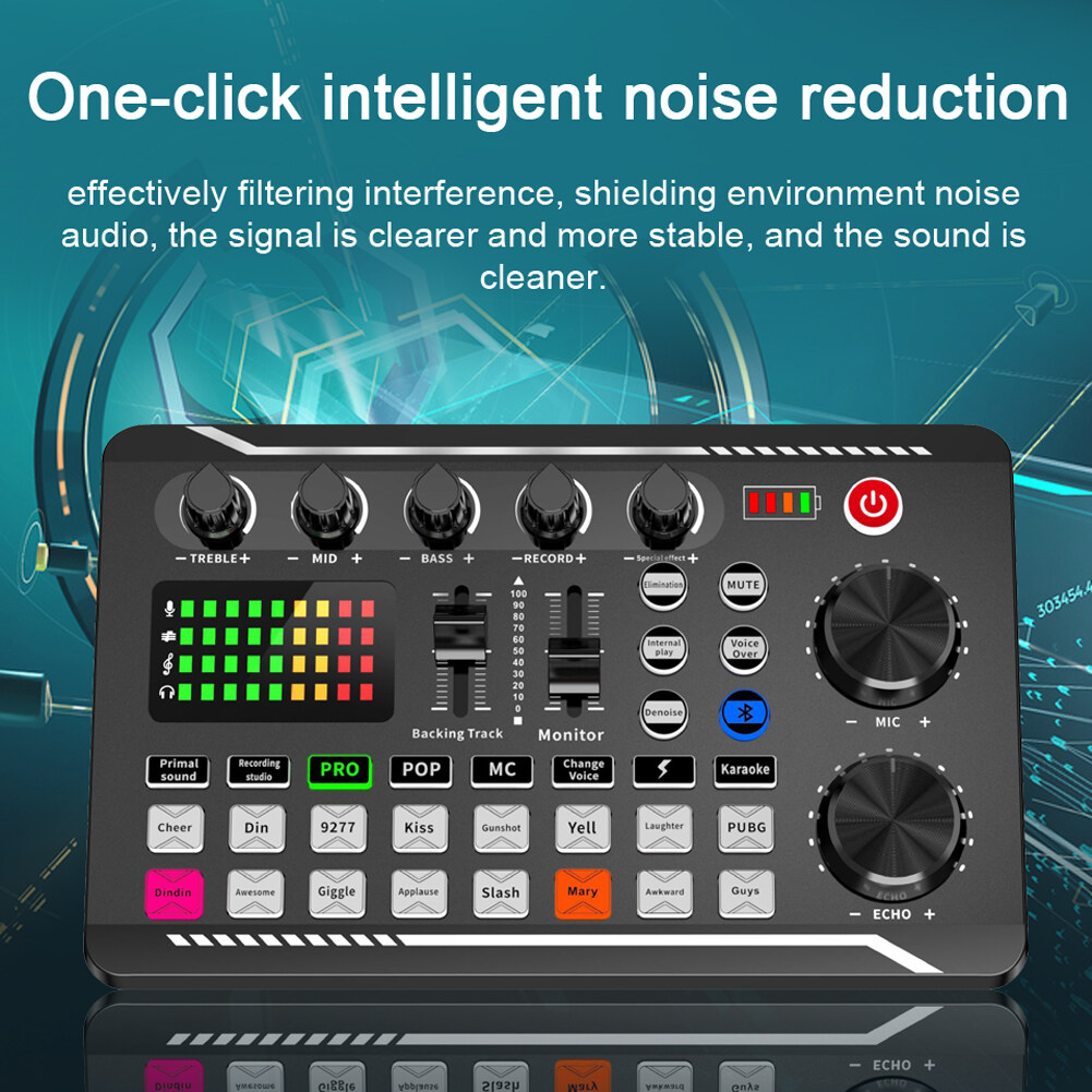 F998 Intelligent Sound Card Noise Reduction Audio Webcast Live Soundcard Tuning Aadjustment Electric Sound Broadcast Equipment for Phone Computers