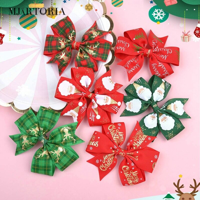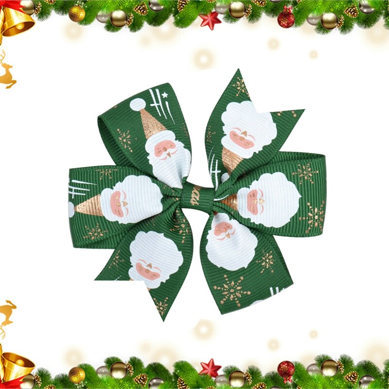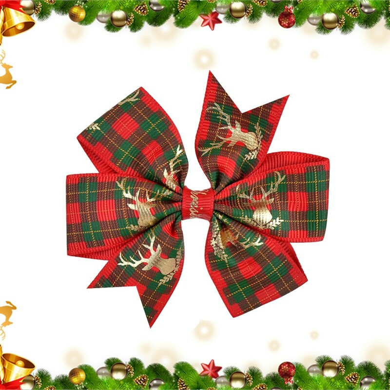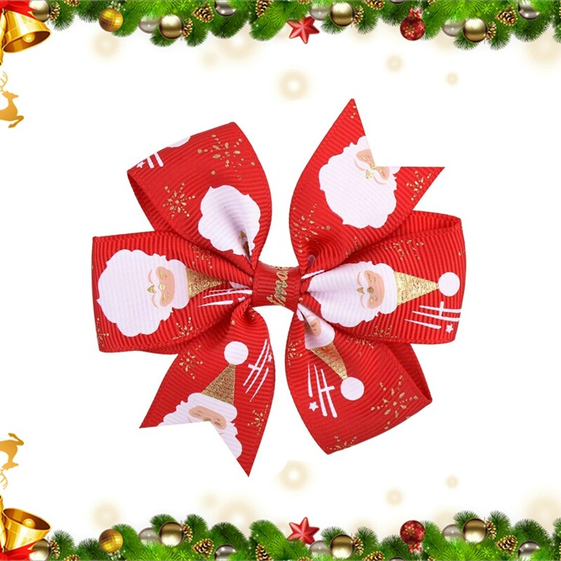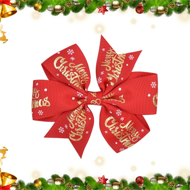 Features:Christmas Bowknot Hair Clip Printed Hair Clip Kids Girls Hair Grips Barrettes Hair Accessory