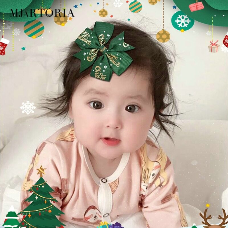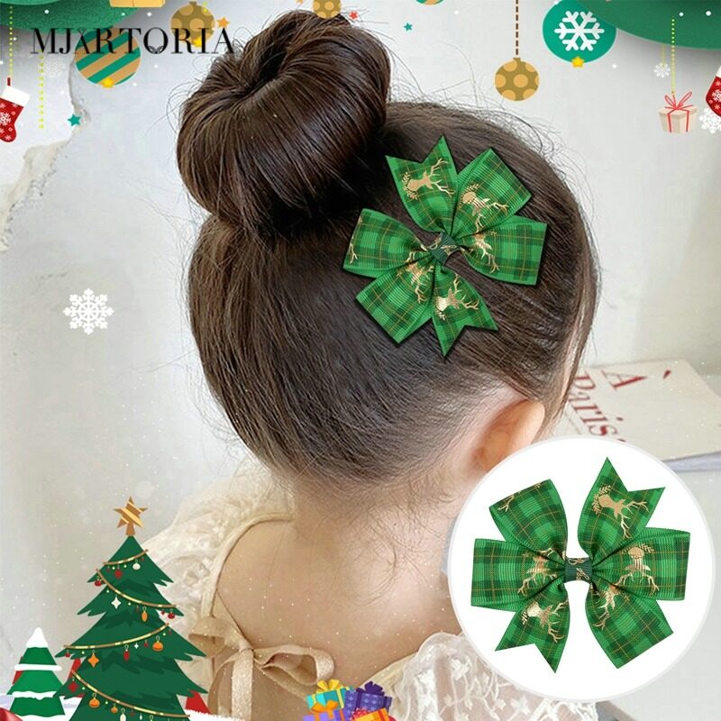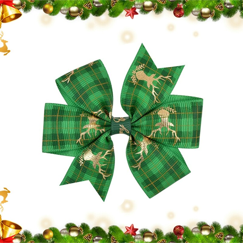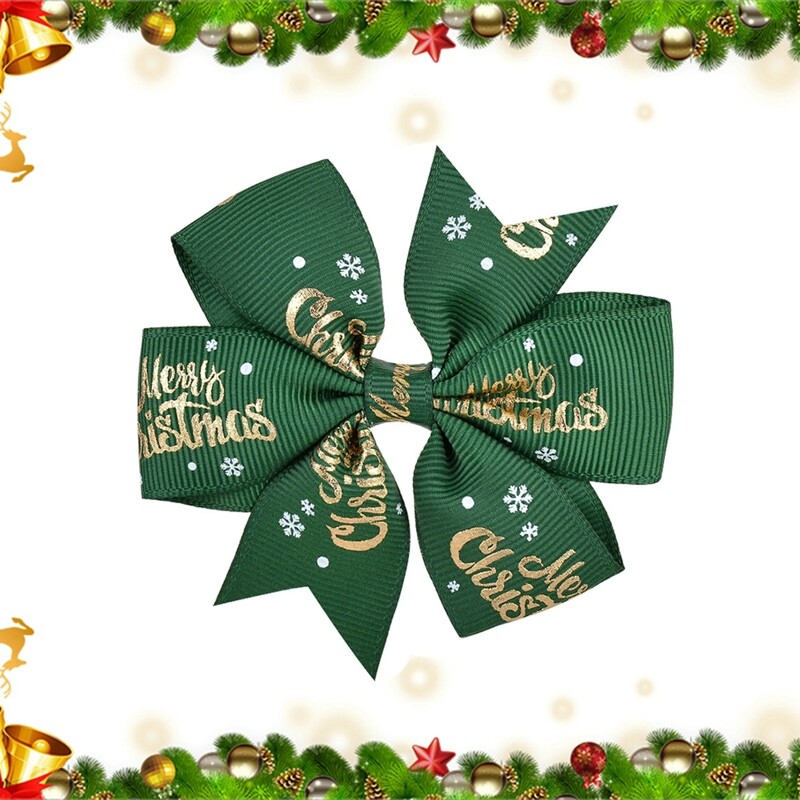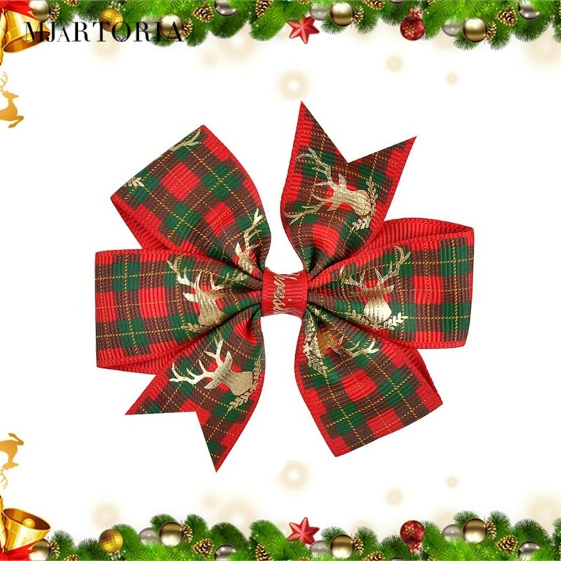 Features:Christmas Bowknot Hair Clip Printed Hair Clip Kids Girls Hair Grips Barrettes Hair Accessory