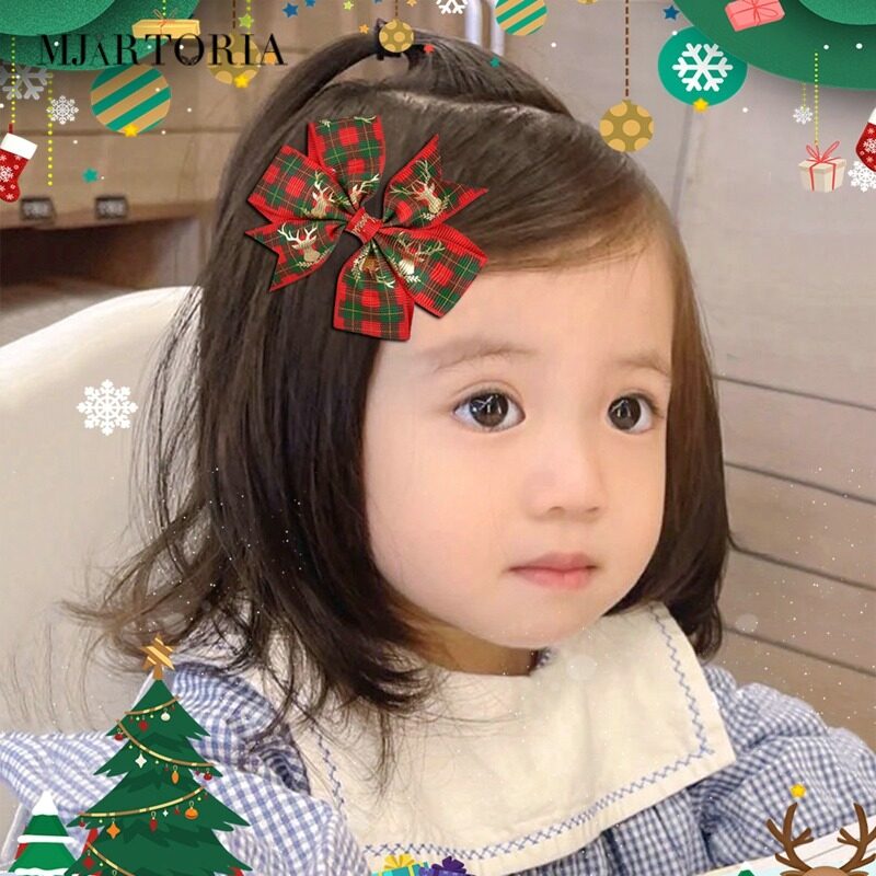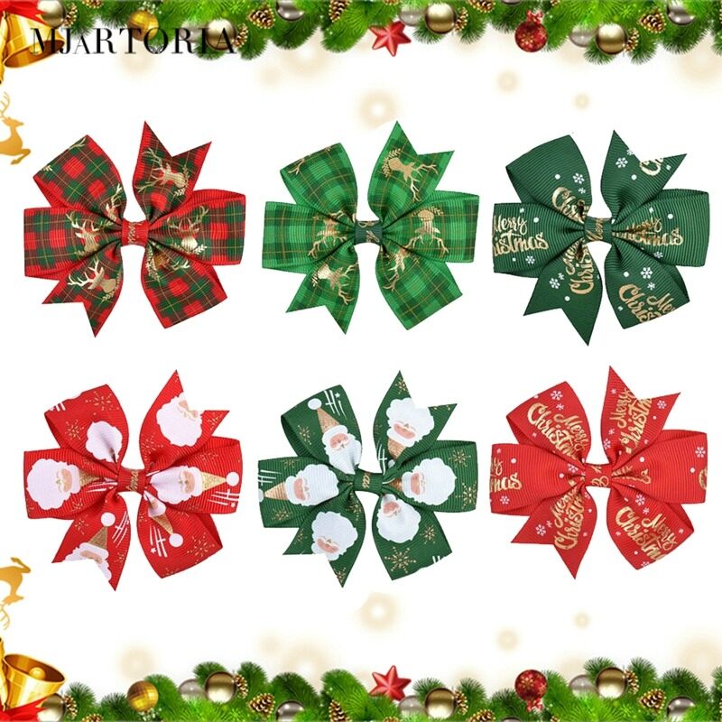 MJartoria Christmas Bowknot Hair Clip Printed Hair Clip Kids Girls Hair Grips Barrettes Hair Accessory