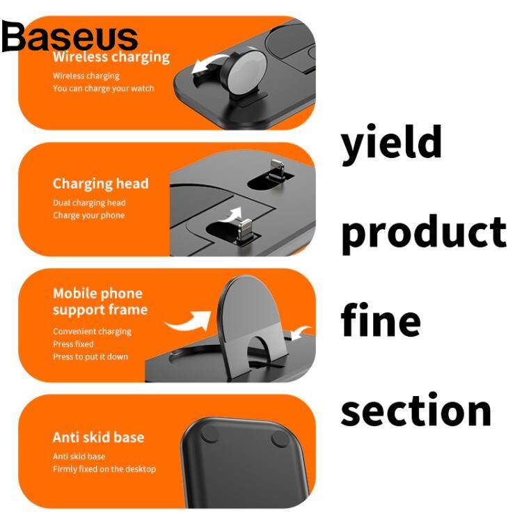 Baseus JJT-A32 3 in 1 Wireless Charger Multi-Function Portable Charging Stand Folding Charging Dock for iPhone iWatch AirPods