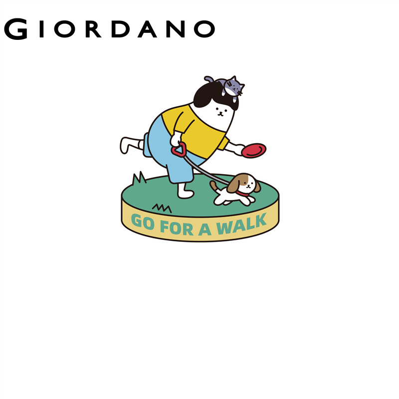 GIORDANO Women WHIKO Series T-Shirts Cute Print Long Sleeve Casual T-Shirts 100% Cotton Crewneck Simple Relaxed Tee 99392149