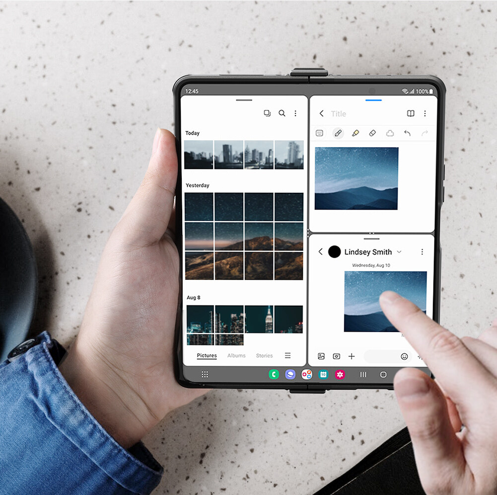 Innovative folding design, 180 ° open and close unlimitedly; Installable original pencil case, carry S Pen easily ; The hidden support function makes it easy to watch the screen and free your hands; The lens sliding cover not only prevents scratches, but also protects the mobile phone from information leakage; PC and TPU by integrally injection molded for 360 ° all inclusive protection; Add airbag on four corners for anti-fall; Spray a layer of special made oil for fine and soft touch; Classic twill design, fashionable and versatile