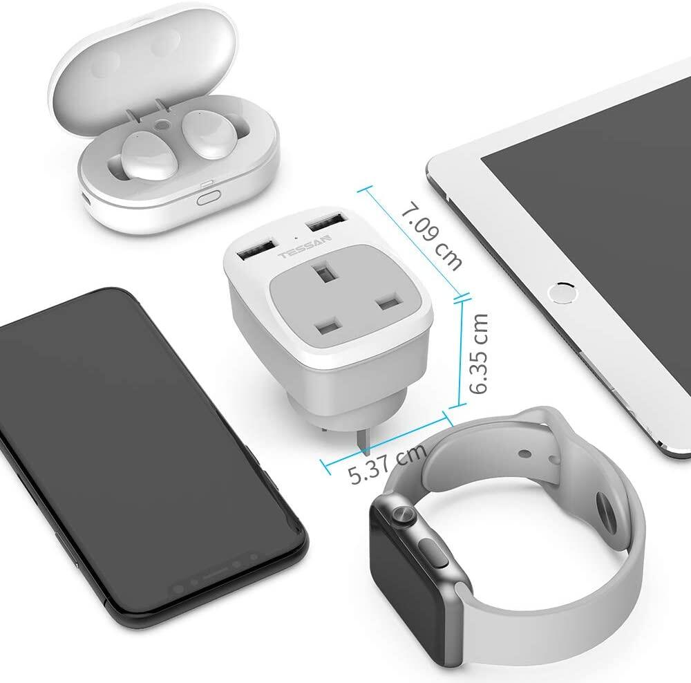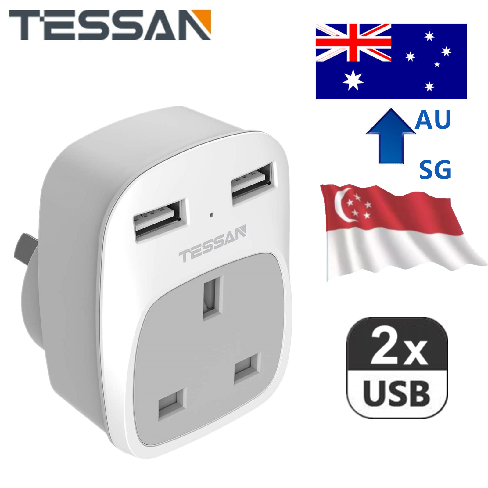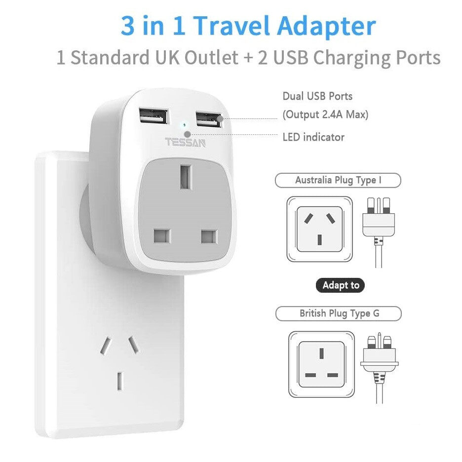 TESSAN Australia China Plug Adapter with 2 USB Ports, Grounded AU Outlet Travel Adapter - 3 in 1 Power Adaptor for UK to Australian TESSAN 3 in 1 Power Socket for UK to Australian New Zealand Fiji Arg