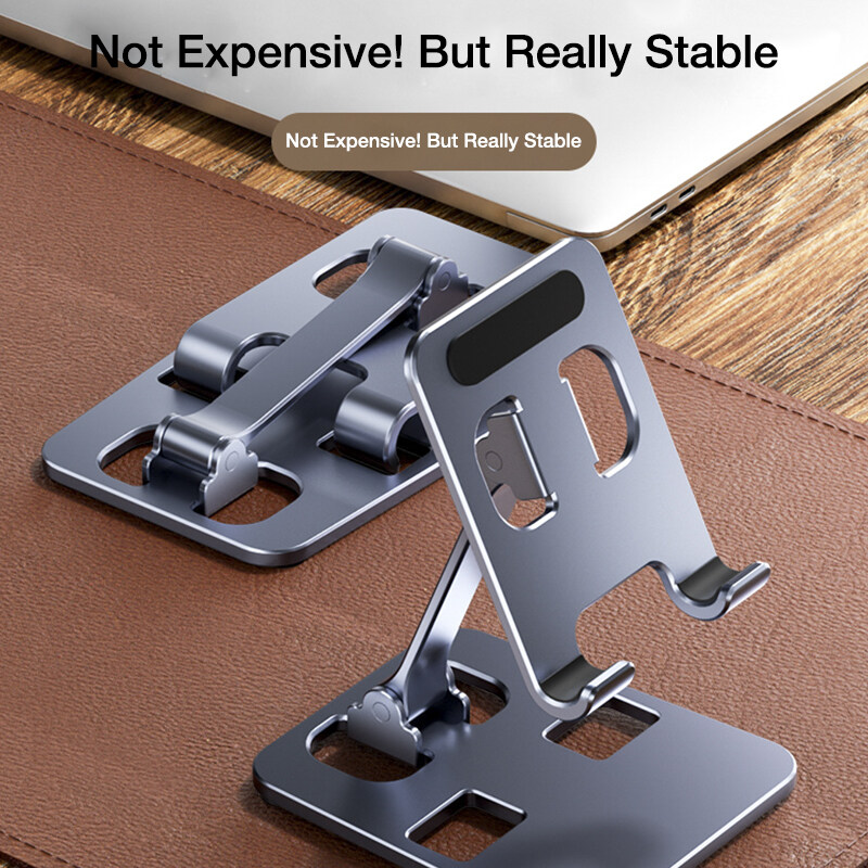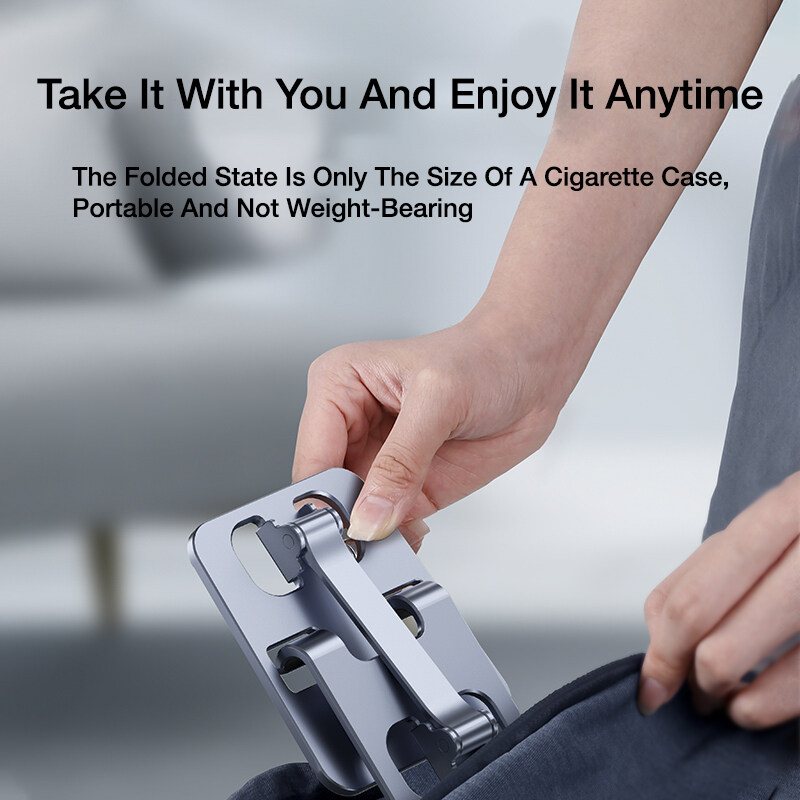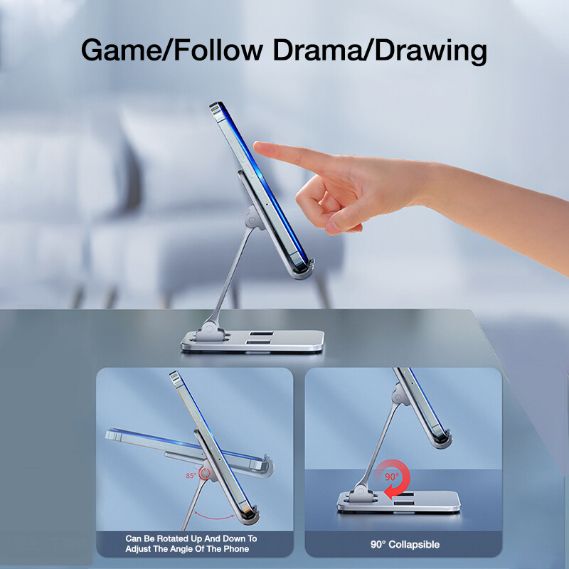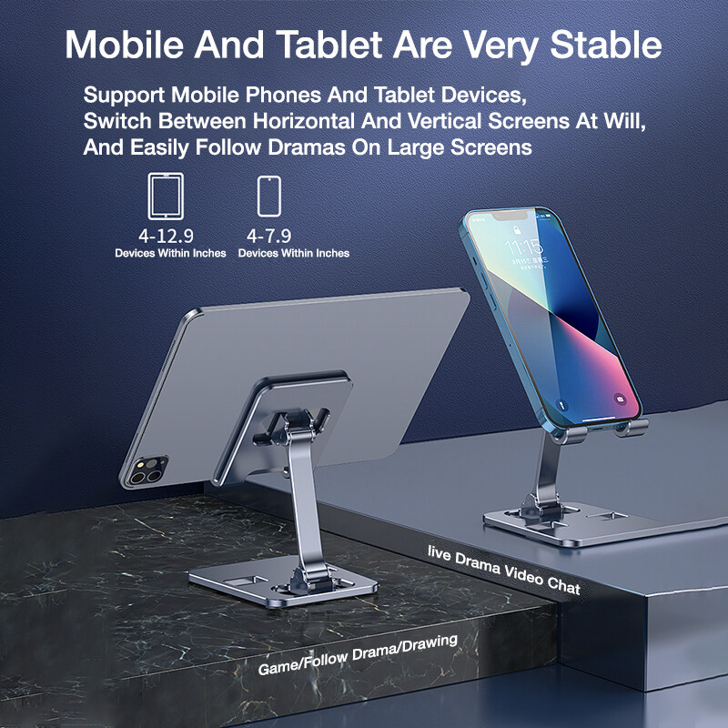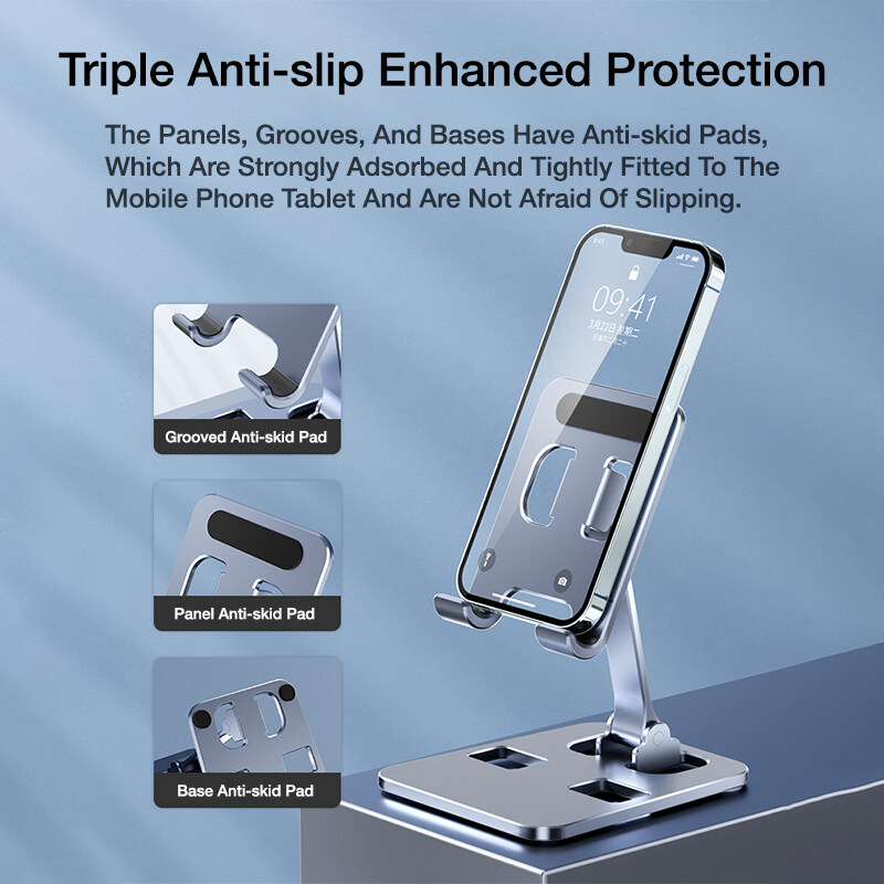 ANTI-SLIP SILICONE PADS of foldable aluminum desktop phone stand prevent your iPhone or iPad from moving or falling. Multi angle adjustable phone stand for office is indispensable for organizing the working space on the tabletop