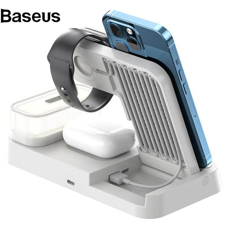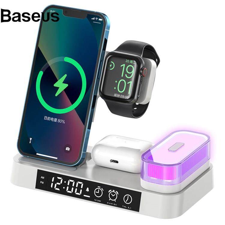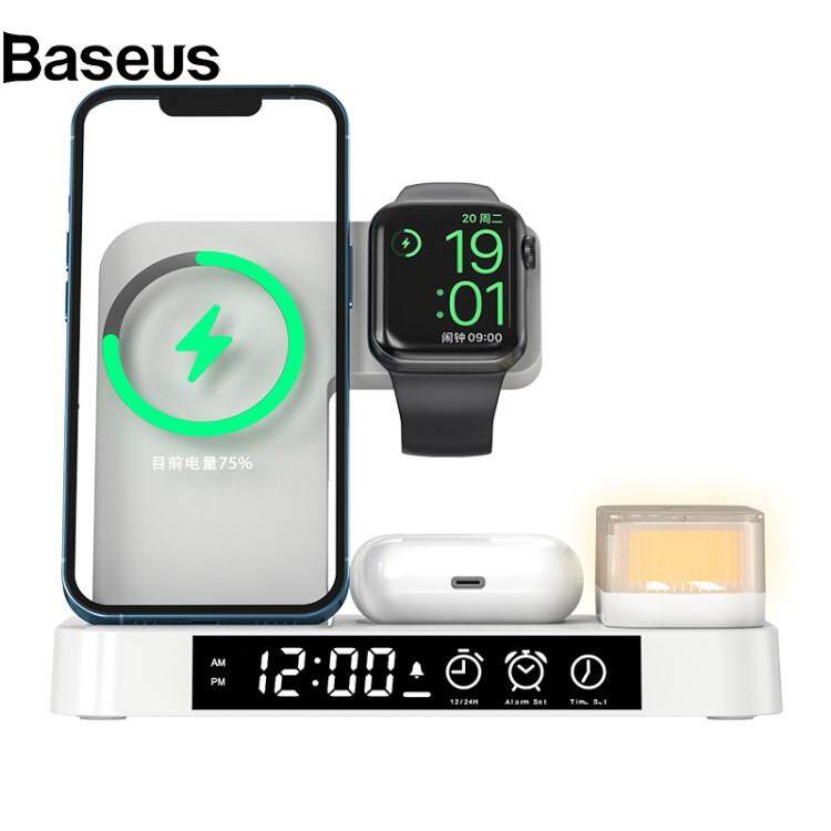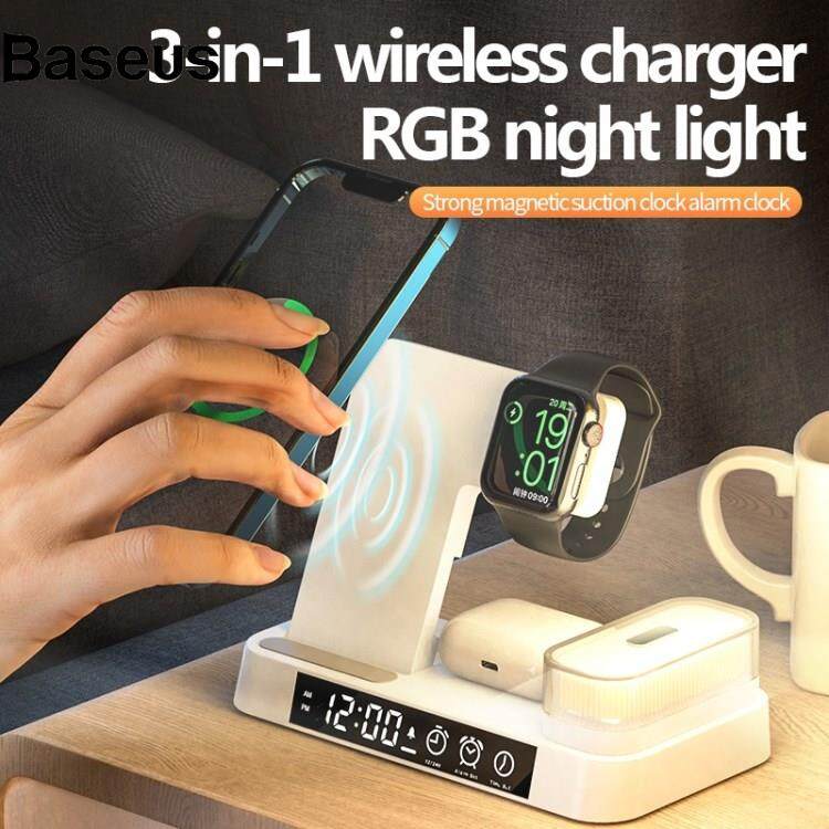 Baseus A37 3-in-1 For Cell Phone Watch 15W Wireless Charger Folding Design Alarm Clock 20W Type C Port RGB LED Night Light