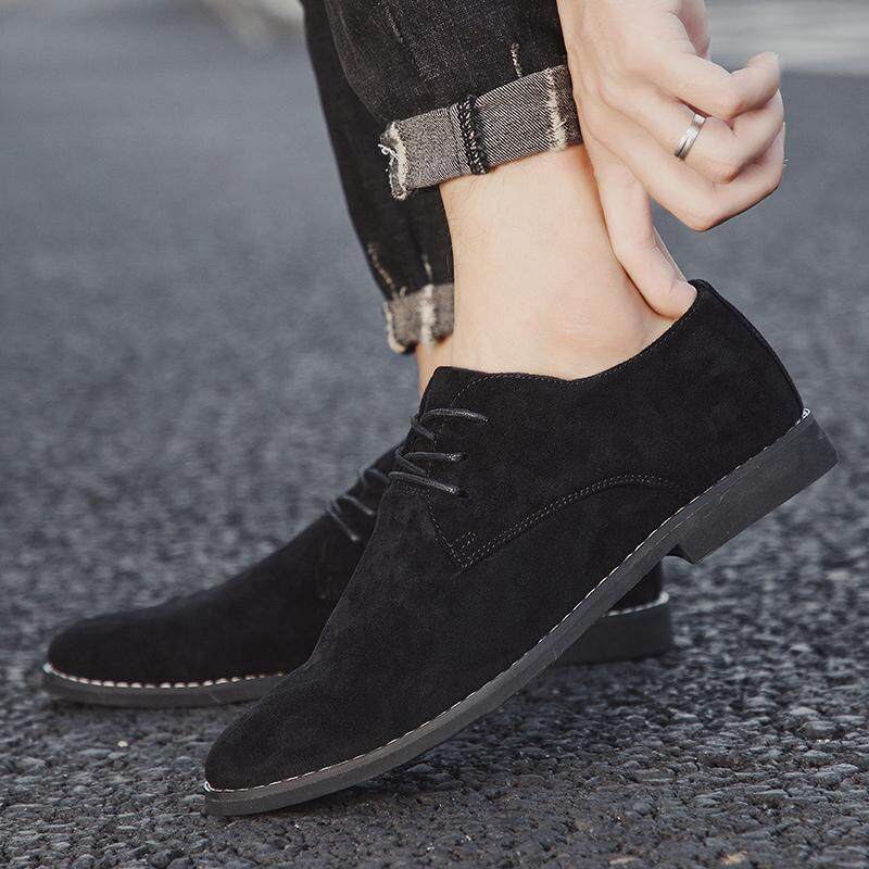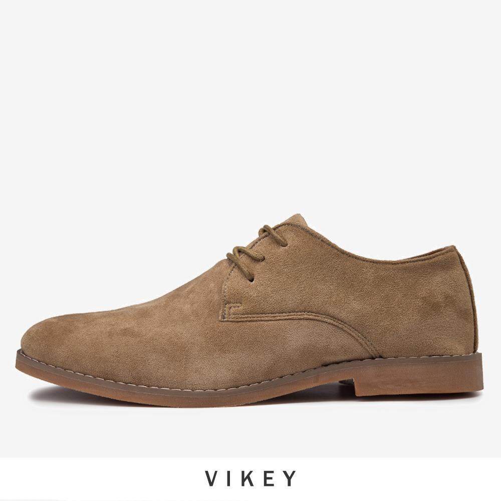 Vikey Plus Size Men Leather Shoes Suede Work Shoe Safety British Style Oxford Fashion Footwear (Black,Khaki,Browm)