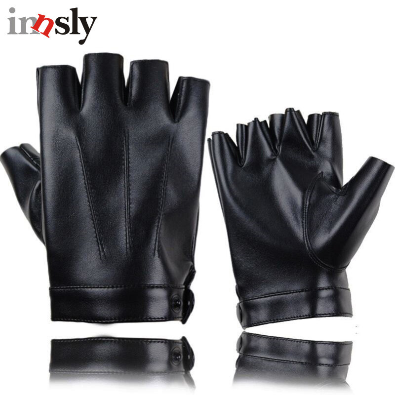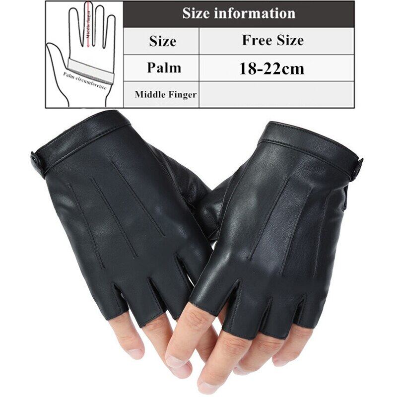 Half Finger Men Gloves PU Leather Motor Punk Black Outdoor Cycling Gloves