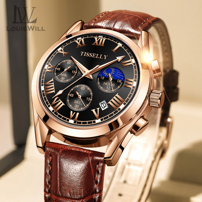 LouisWill Watch Men Watch Men's Watches Fashion Watch Original Quartz Watch For Men Quartz Men's Watches Waterproof Watch Business Watch Calendar Outdoor Sport Wristwatch