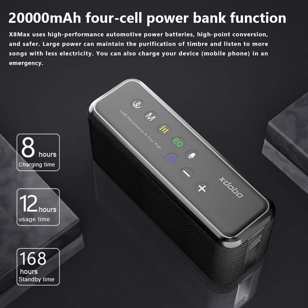 XDOBO X8 MAX 100W Super Bass IPX5 Waterproof Subwoofer TWS Bluetooth 5.0 20000mAh Stereo Speaker for Parties Home Outdoor