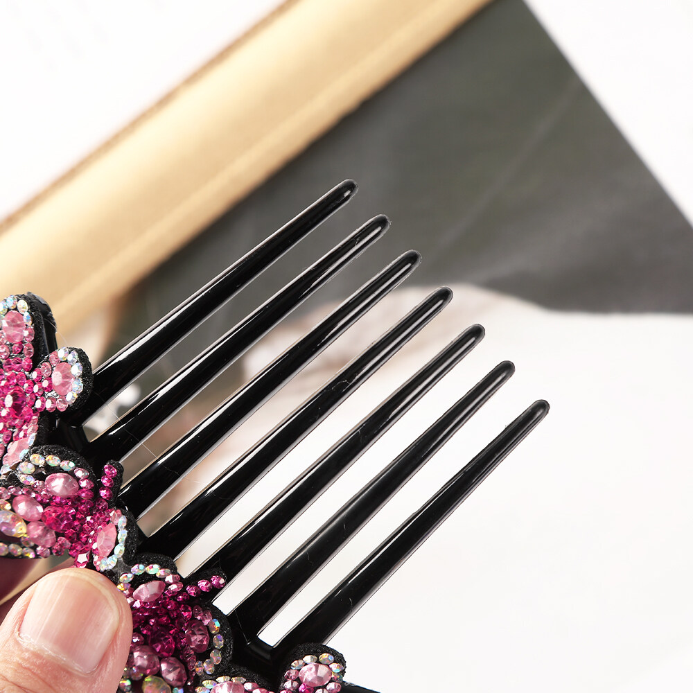 1pc Retro Rhinestone Seven-tooth Comb Bow Hair Clip for Women Non-slip Flower Hair Comb Hair Accessories