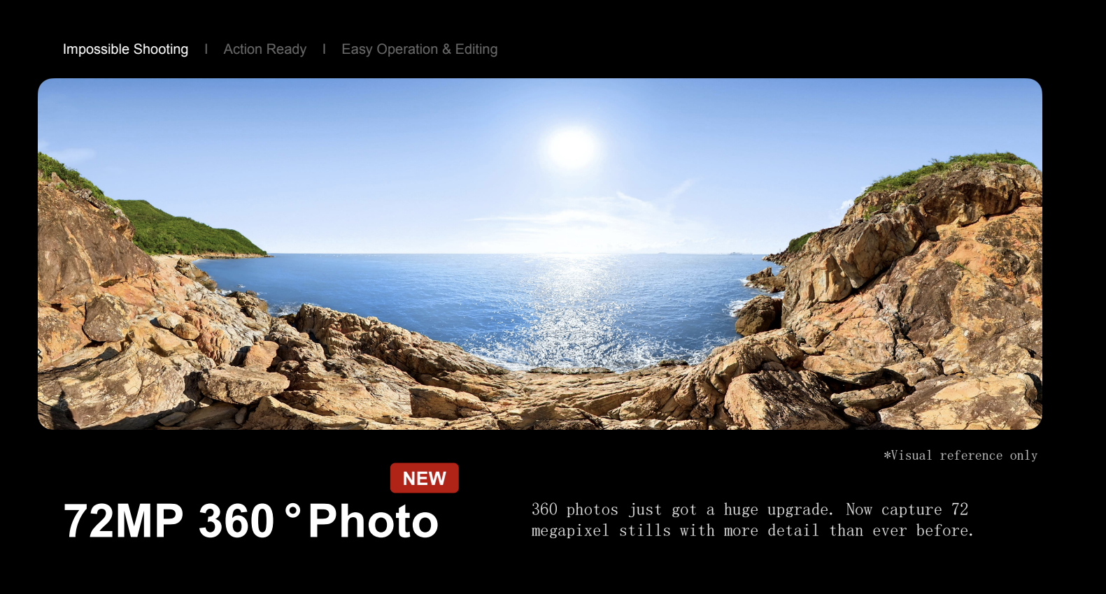 X3 delivers the most megapixels ever in a 360 action cam with 72MP photos for ultra-detailed stills. It also captures 8K 360 timelapses, perfect for cityscapes and landscapes alike.