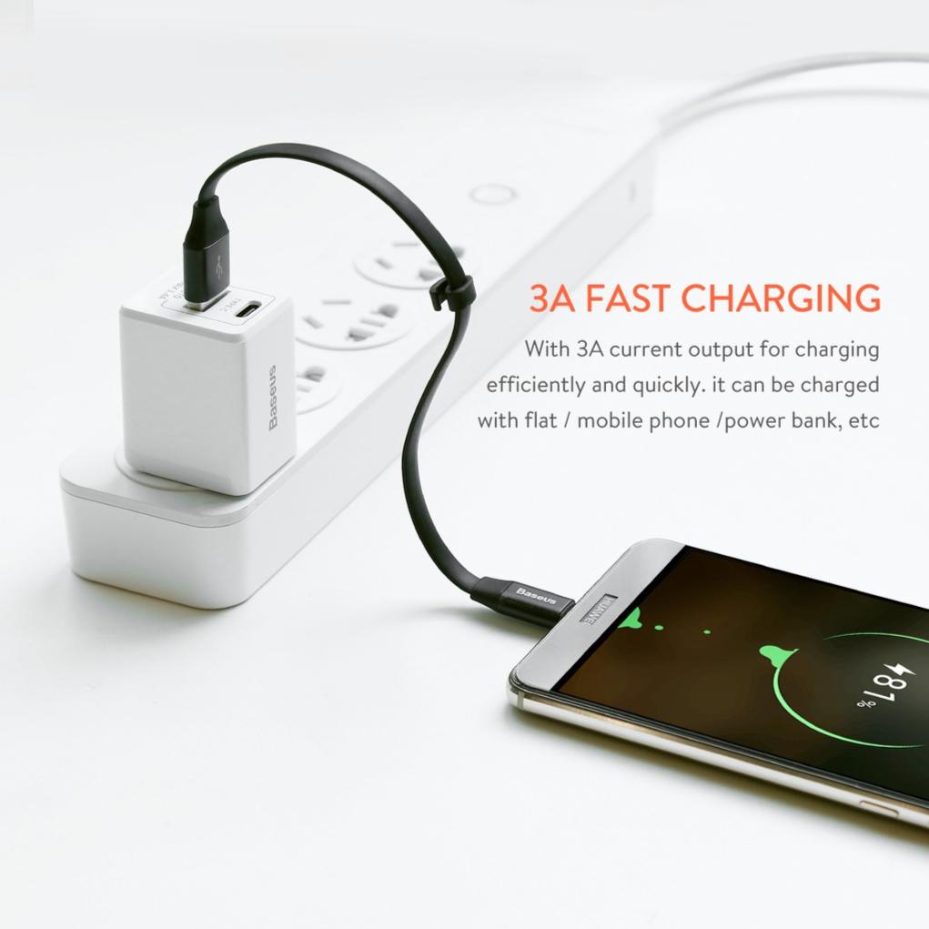 BASEUS Nimble 23cm Flat Data Charge Fast Charging For Phone Type C USB C Samsung Phone S21 S20 Ultra S20 Plus Note 10 / 9 / 8 S10 S10e S10+ + e S9 S9+ Plus Huawei P40 Pro P30 Mate 30 Pro Xiaomi Oppo R