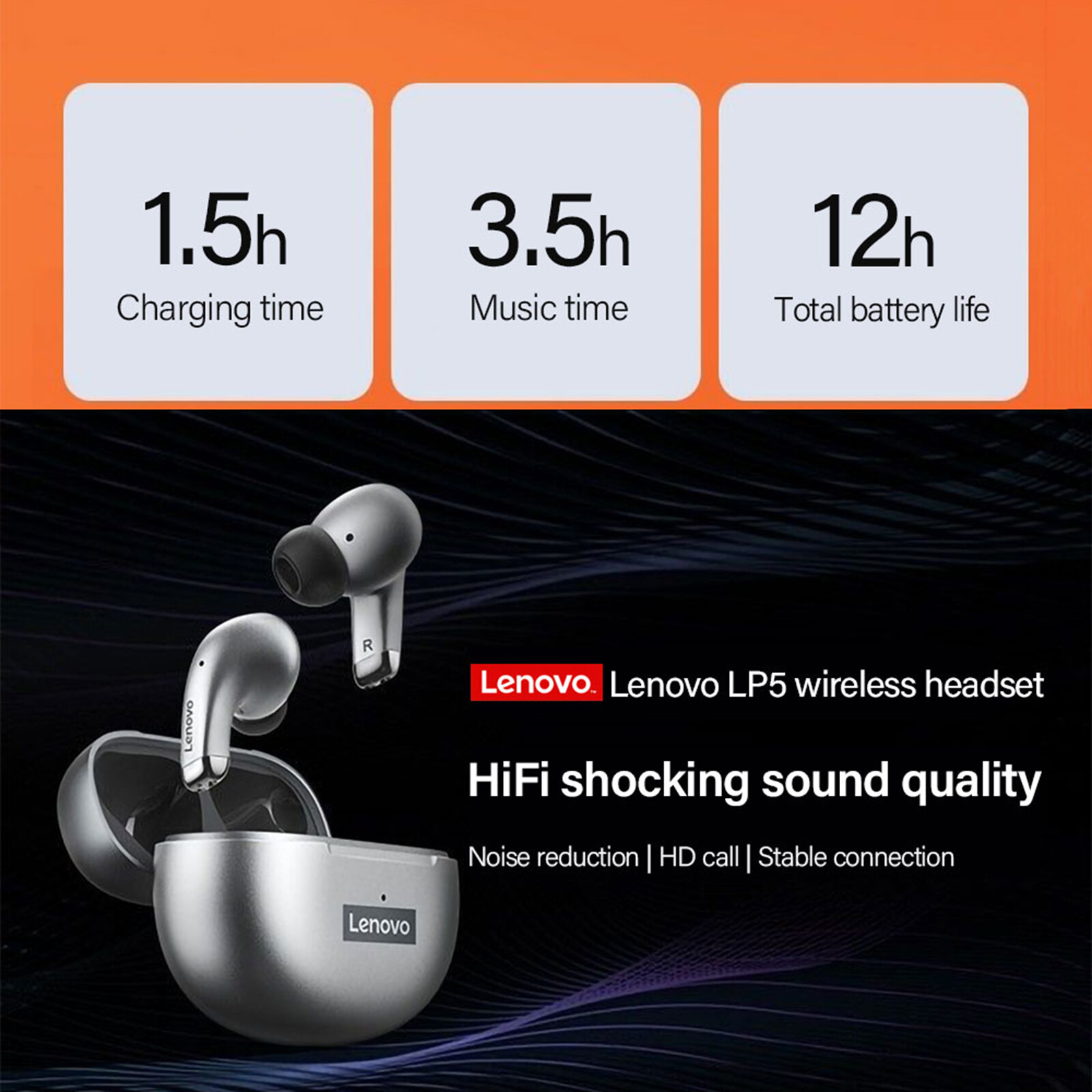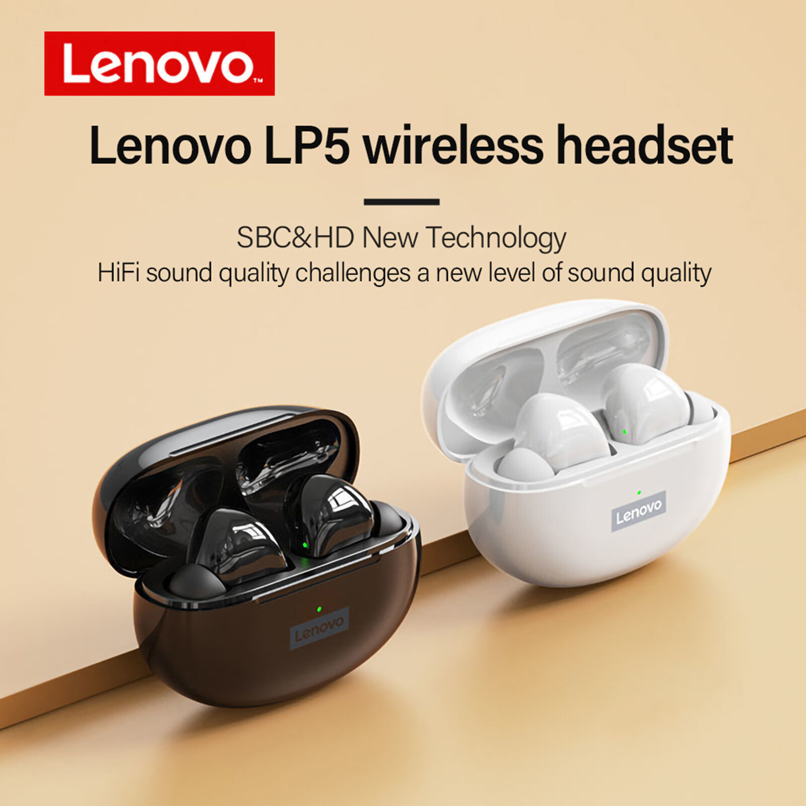 [Kitsmall] Lenovo LP5 Original Wireless Earphones Bluetooth V5.0 TWS Headphone In Ear Noise Reduction HD Sound Quality Sport Running Headset HD Stereo Touch Control Earpod Support iOS/Android Phones H