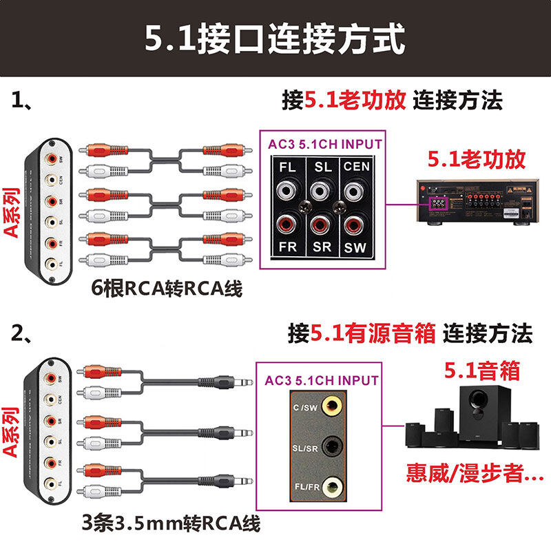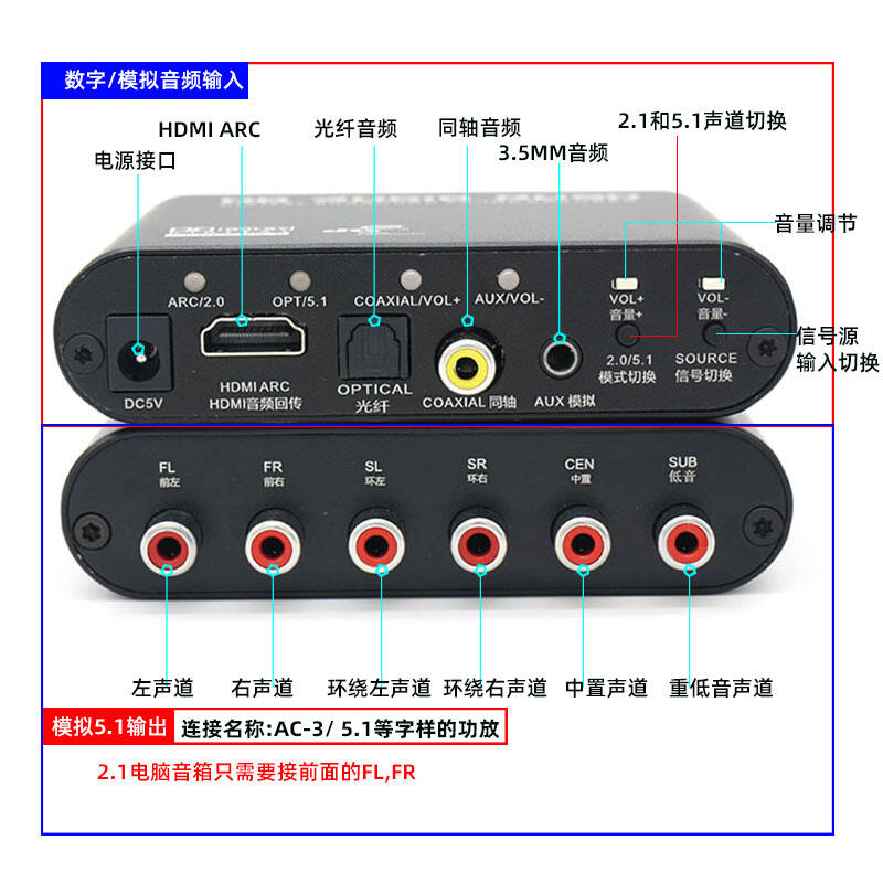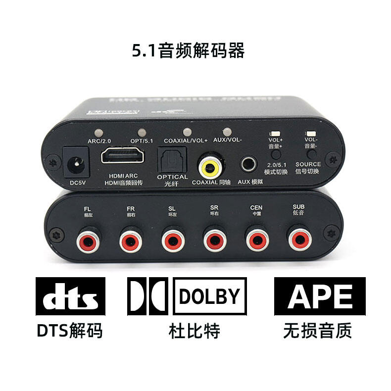 DVD TV Hdmiarc/Optical Fiber/Coaxial/Aux to 5.1 Channel AC3 Dolby DTS Audio Decoder